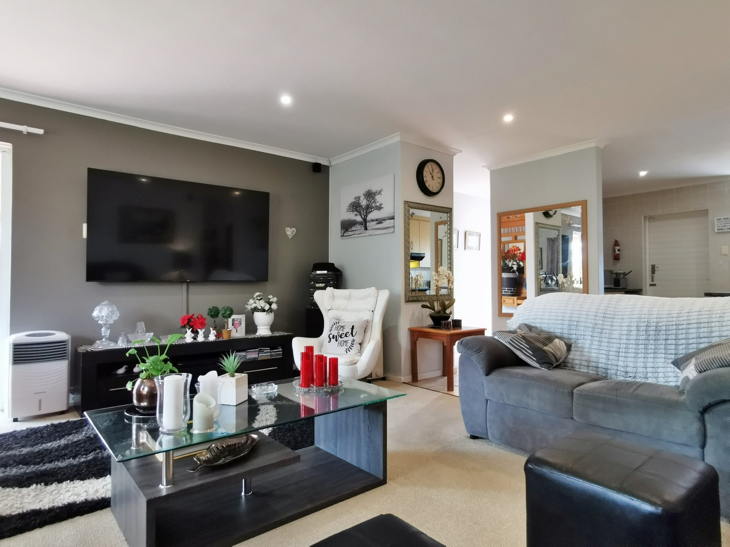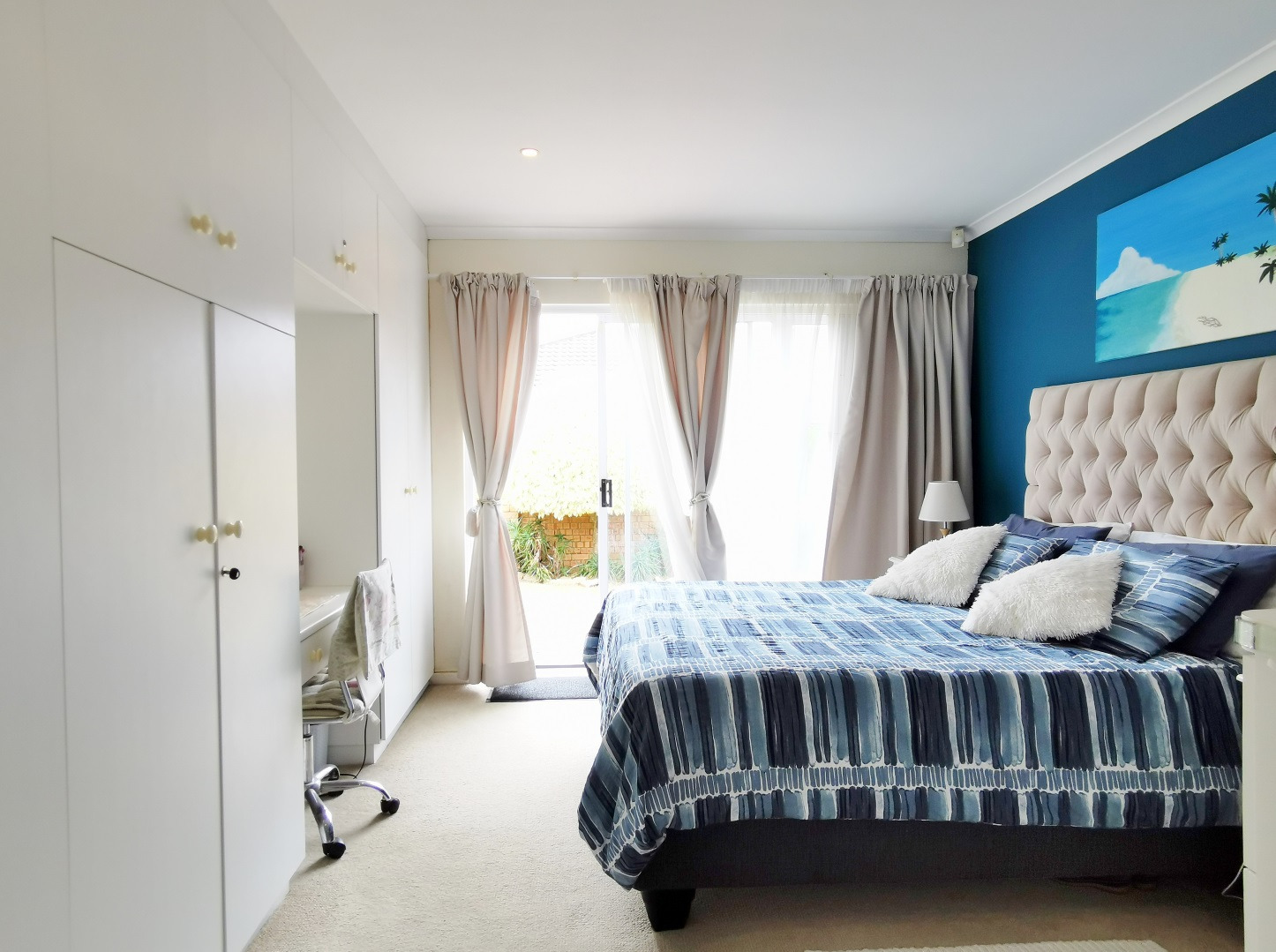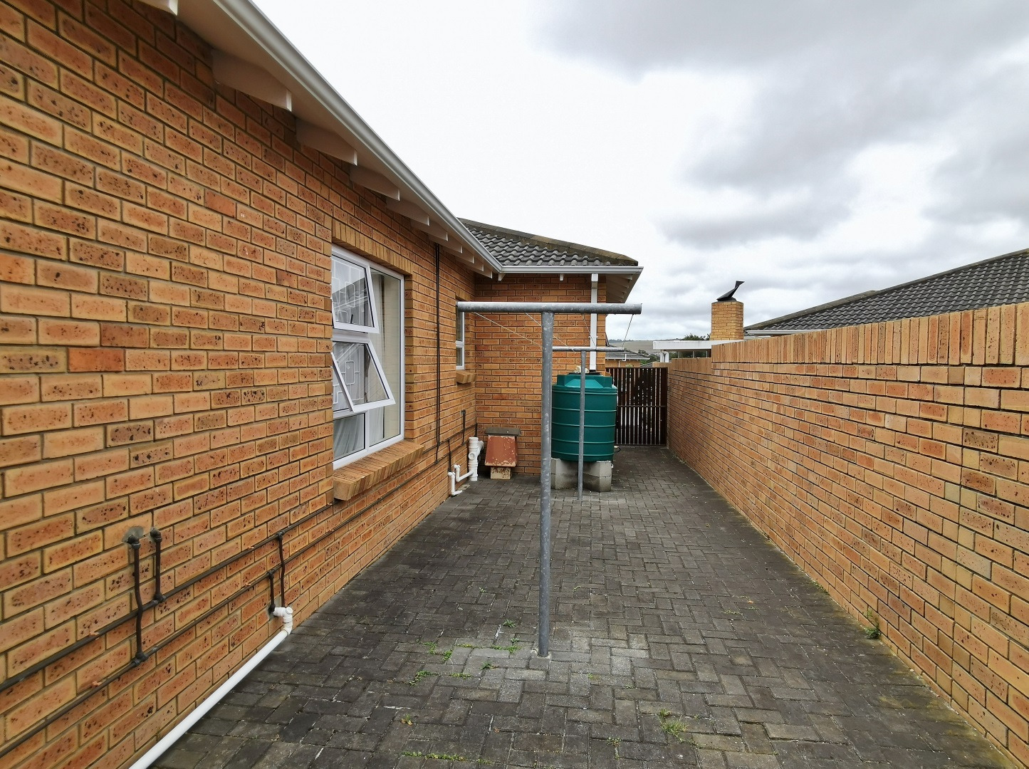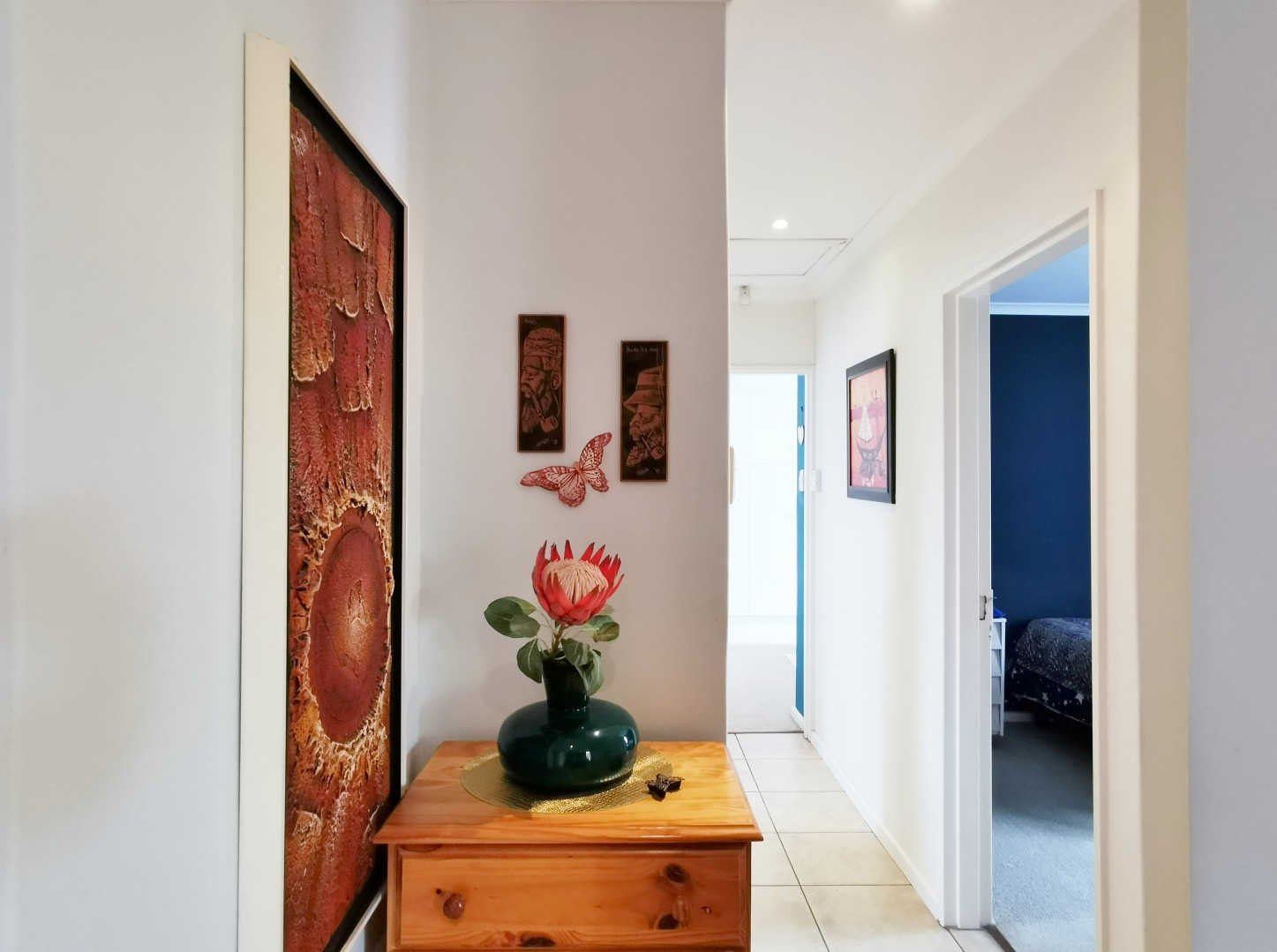 This well-maintained sectional title home offers comfortable living in a secure and pet-friendly complex. It features three bedrooms and two bathrooms, including a main en suite with a walk-through dressing area and sliding door opening onto a private paved patio in the garden. The kitchen is fitted with a breakfast counter, ceran hob, under-counter oven and is open plan to the carpeted living area, which leads out to a covered tiled patio with a built-in braai and an enclosed garden – ideal for entertaining.