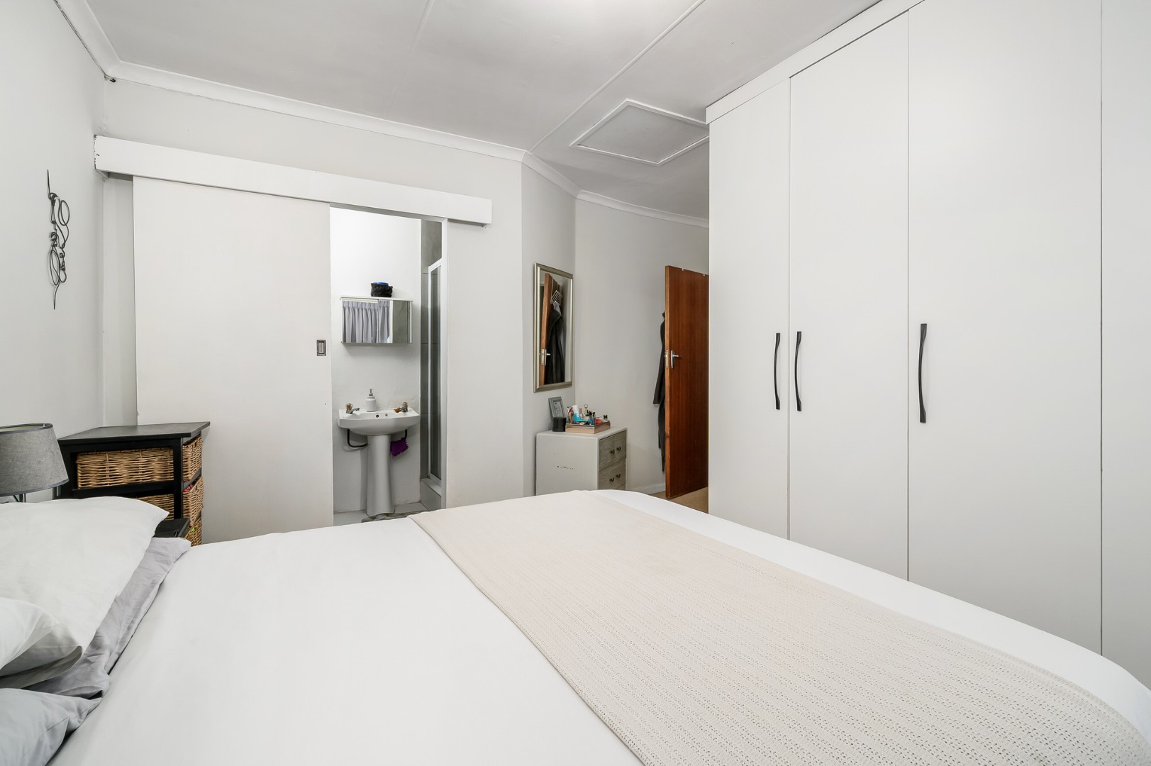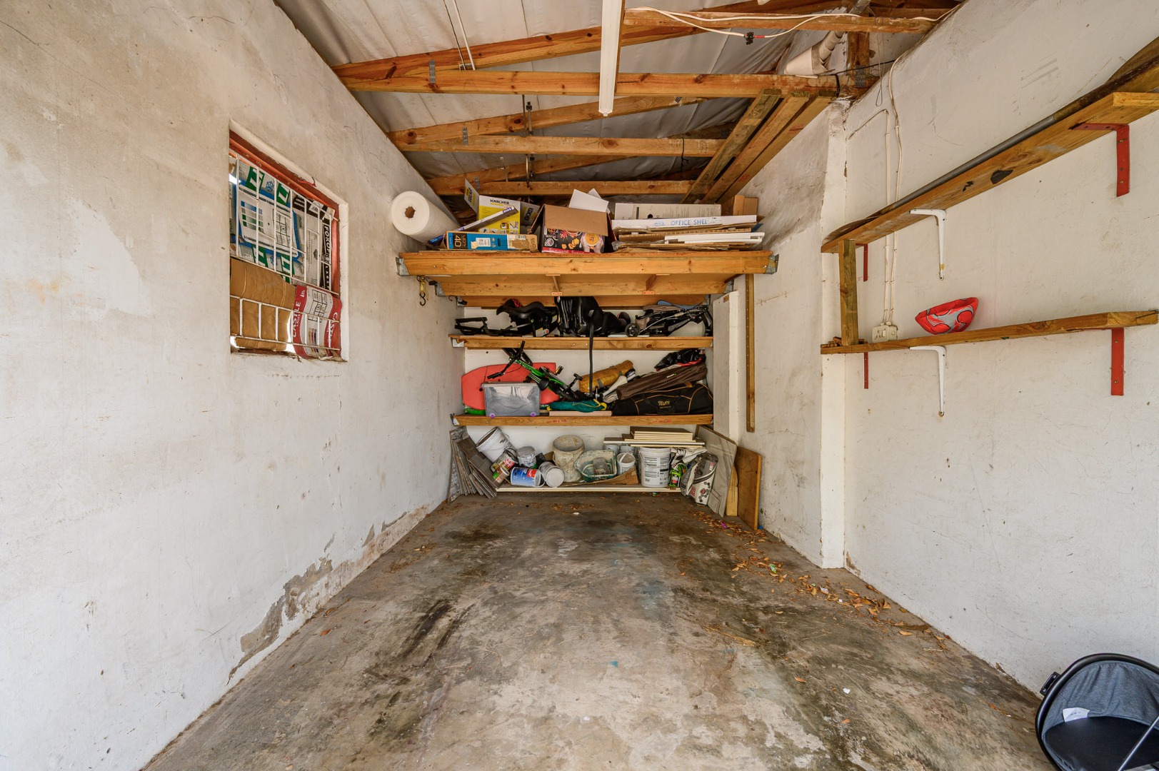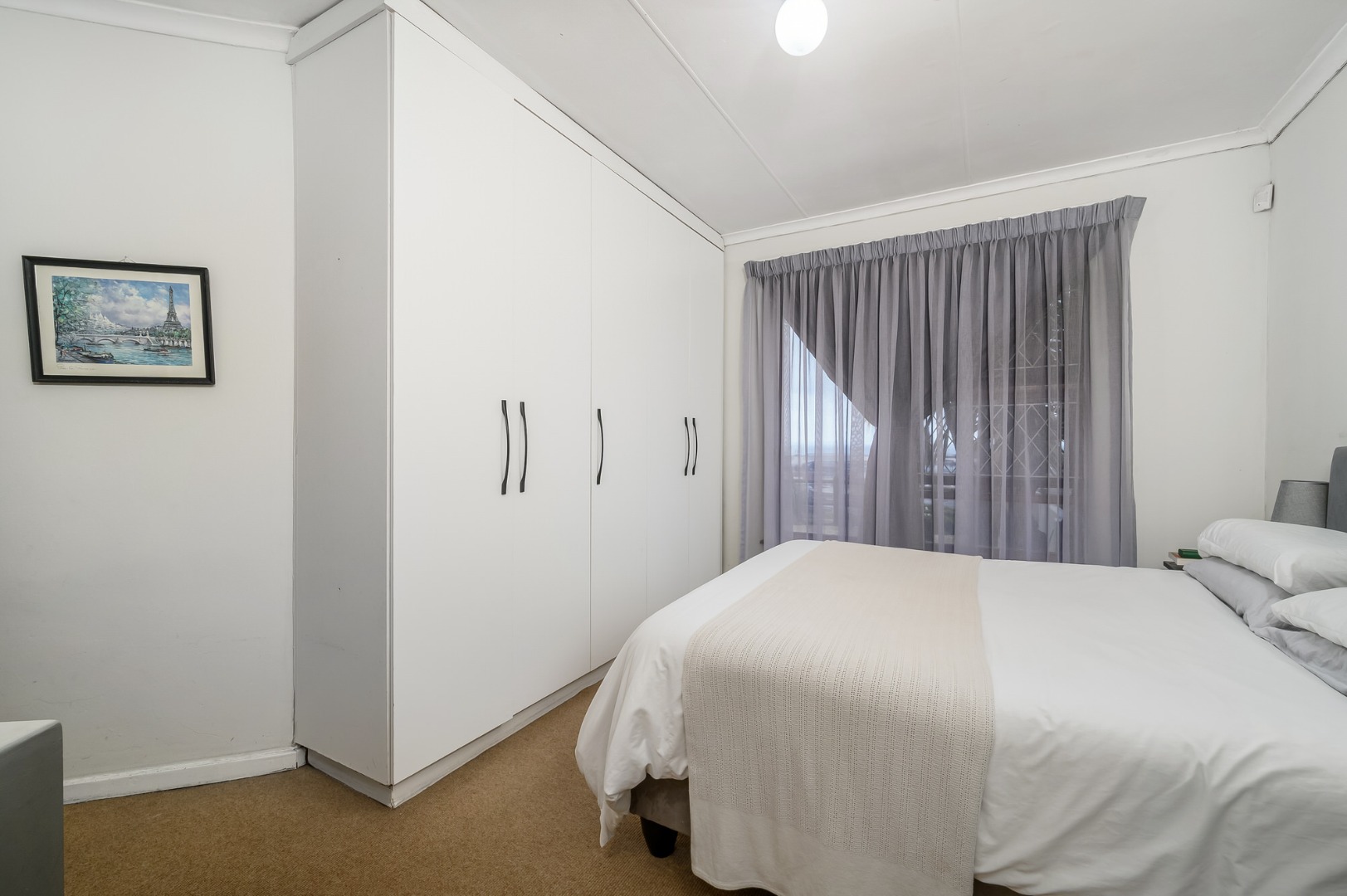 The open plan kitchen offers ample built-in cupboards, a freestanding stove, and water connections. A separate storage room leads off the kitchen and also accommodates water connections for a washing machine. Living areas, bathrooms, and the kitchen are neatly tiled, while the bedrooms feature comfortable carpeted flooring. All bedrooms include built-in cupboards, with the main bedroom enjoying the convenience of an en-suite bathroom.