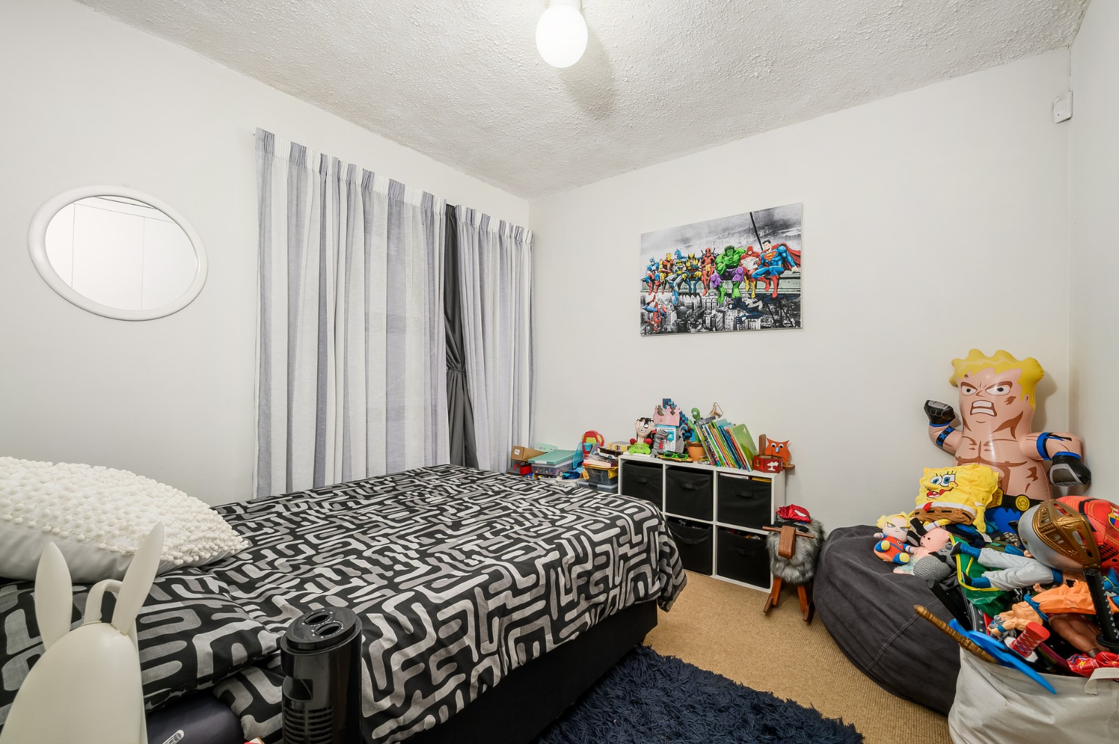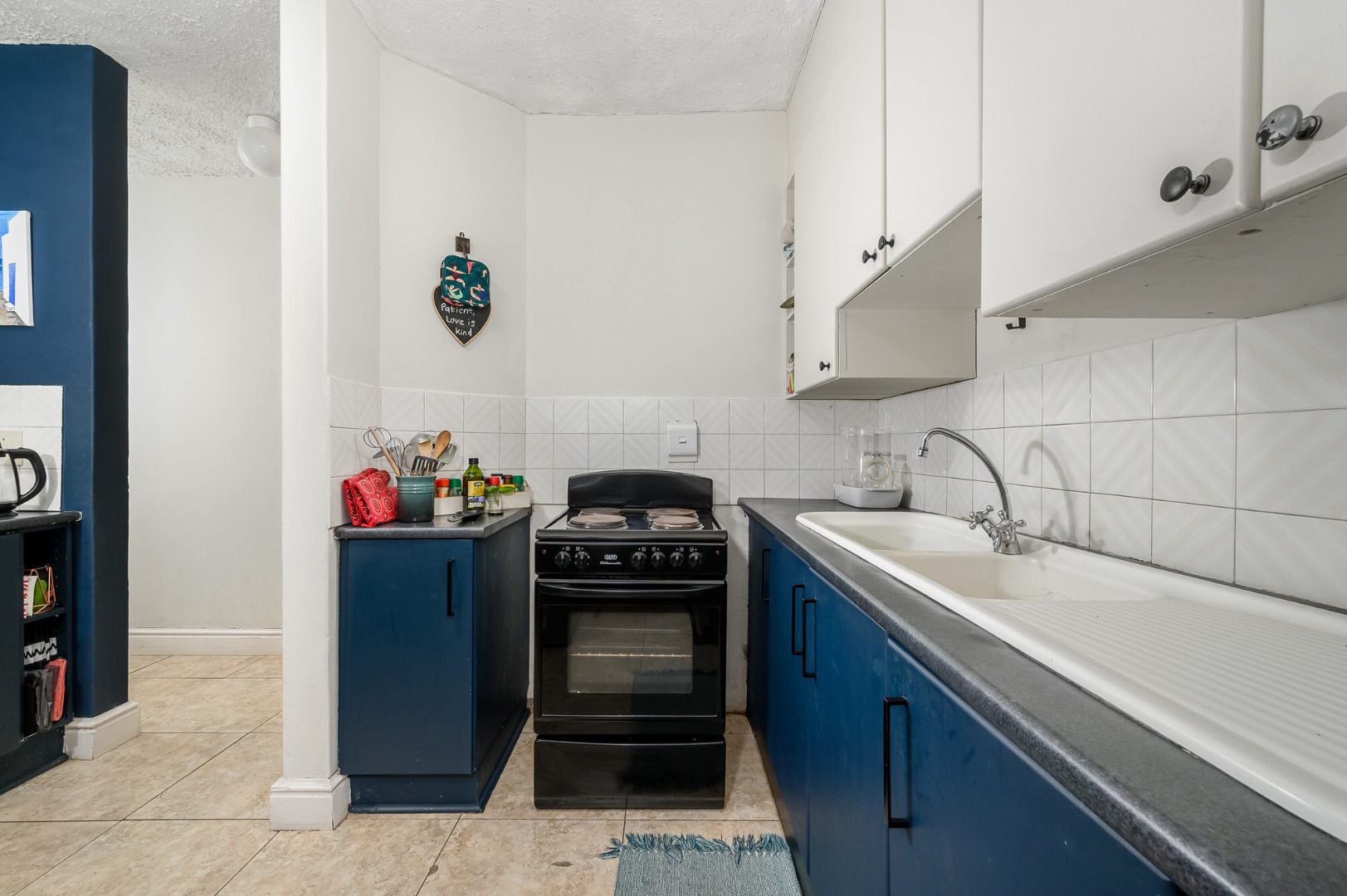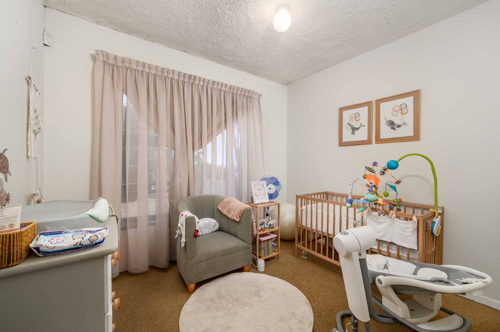 The open plan kitchen offers ample built-in cupboards, a freestanding stove, and water connections. A separate storage room leads off the kitchen and also accommodates water connections for a washing machine. Living areas, bathrooms, and the kitchen are neatly tiled, while the bedrooms feature comfortable carpeted flooring. All bedrooms include built-in cupboards, with the main bedroom enjoying the convenience of an en-suite bathroom.