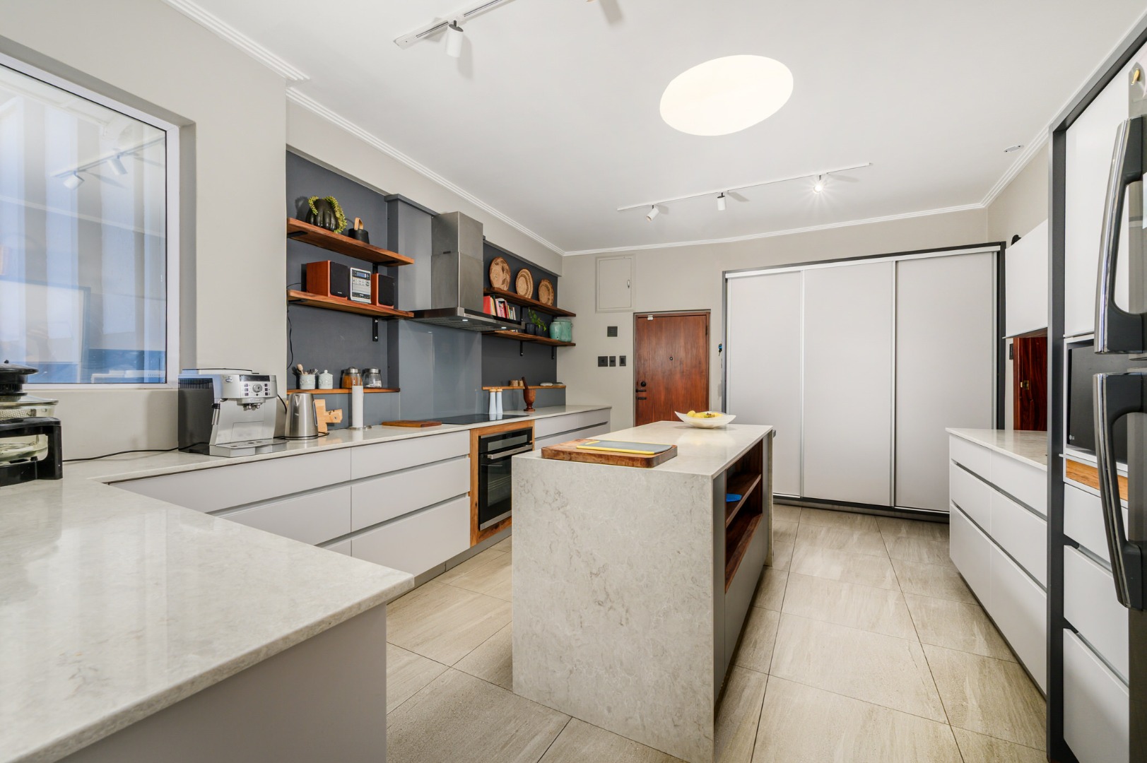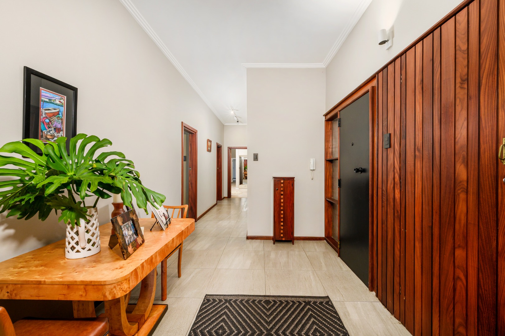 Inside, the apartment unfolds through a welcoming entrance hall and into generous living spaces designed for both comfort and entertaining. The TV lounge with fireplace flows into a sun lounge and formal dining room, while an enclosed patio section creates an additional versatile living area. The modern, newly renovated kitchen is both stylish and practical, complete with a laundry and scullery nook.