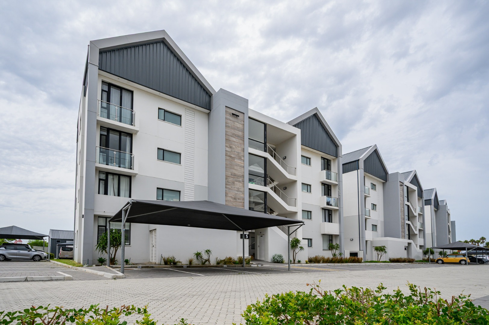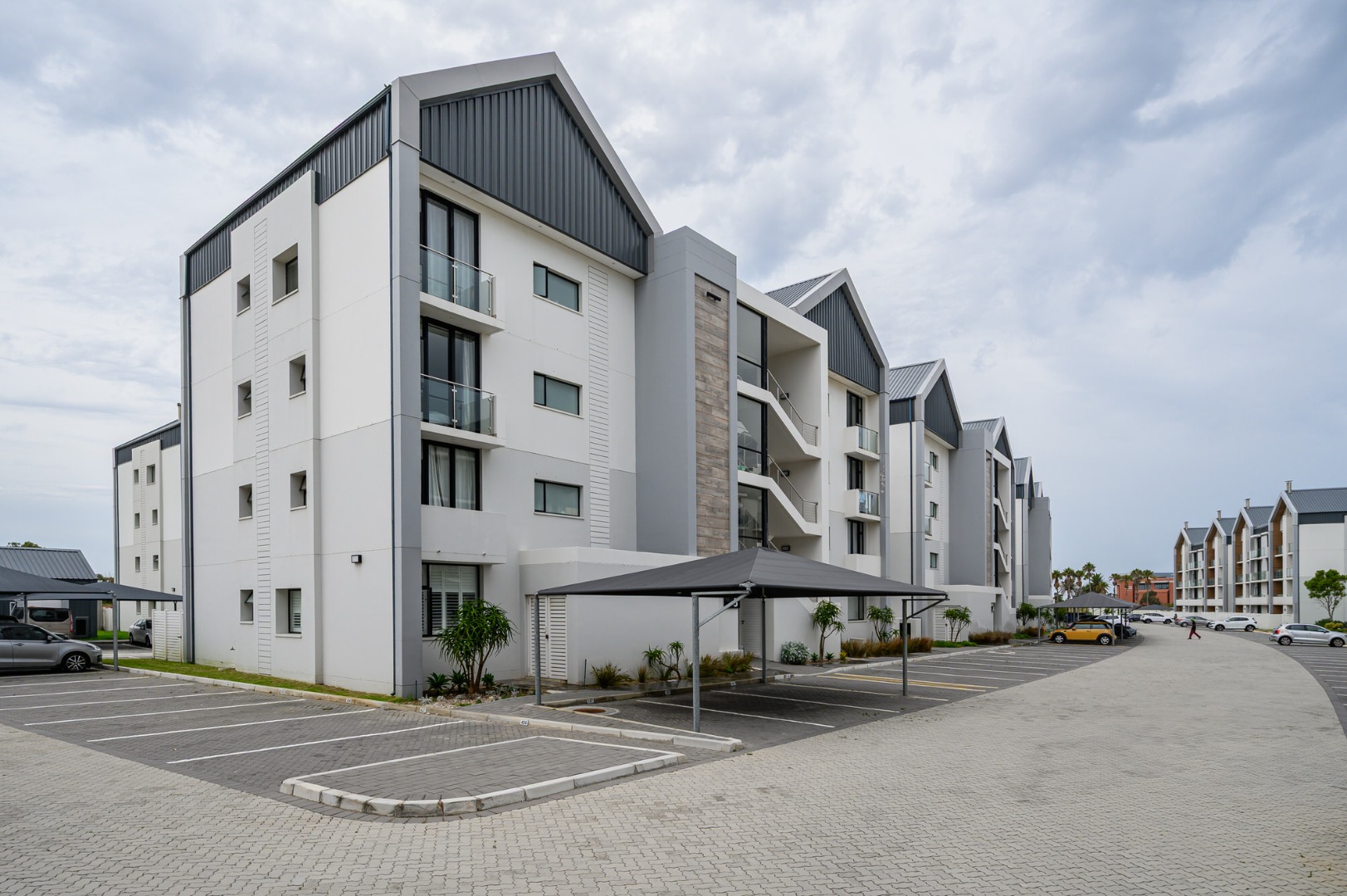 Discover modern living in this stylish 2-bedroom, 2-bathroom apartment located within a secure estate in Summerstrand, Port Elizabeth. Boasting a contemporary architectural design with clean lines and a well-maintained facade, this property offers excellent kerb appeal. The complex features dedicated carport parking and private balconies, enhancing the overall aesthetic and providing residents with outdoor space.