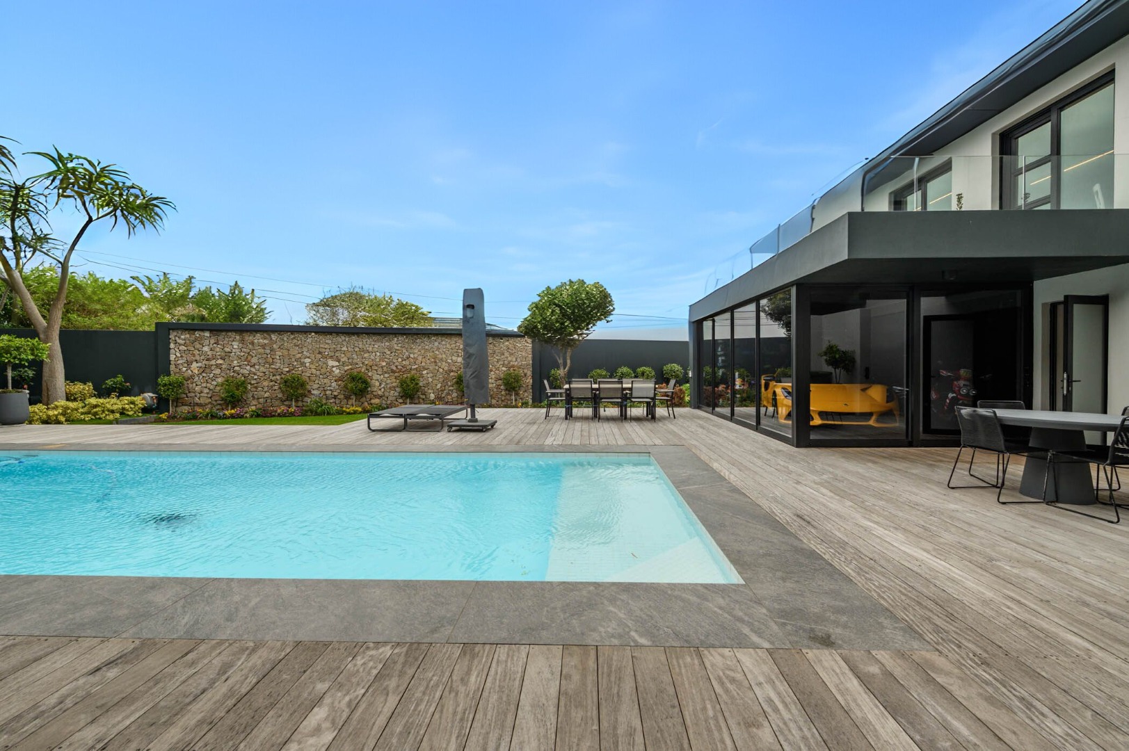 Comprising four luxurious bedrooms, each with its own en-suite bathroom, the home ensures comfort and privacy for the entire family. The main suite is a sanctuary featuring his and hers dressing rooms and a spa-inspired bathroom.