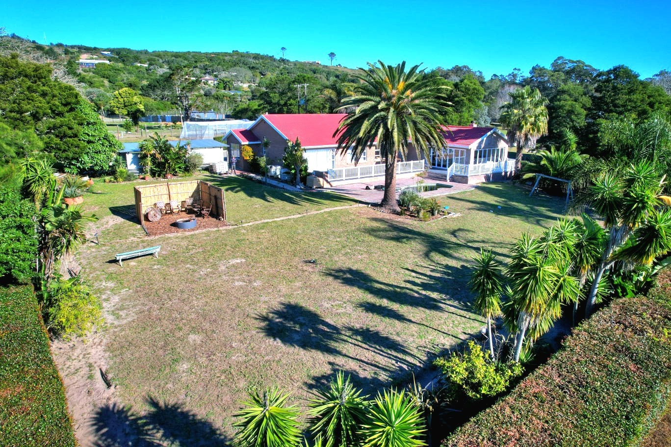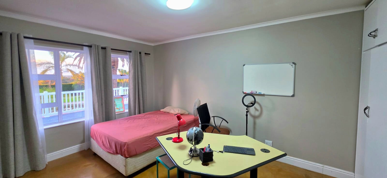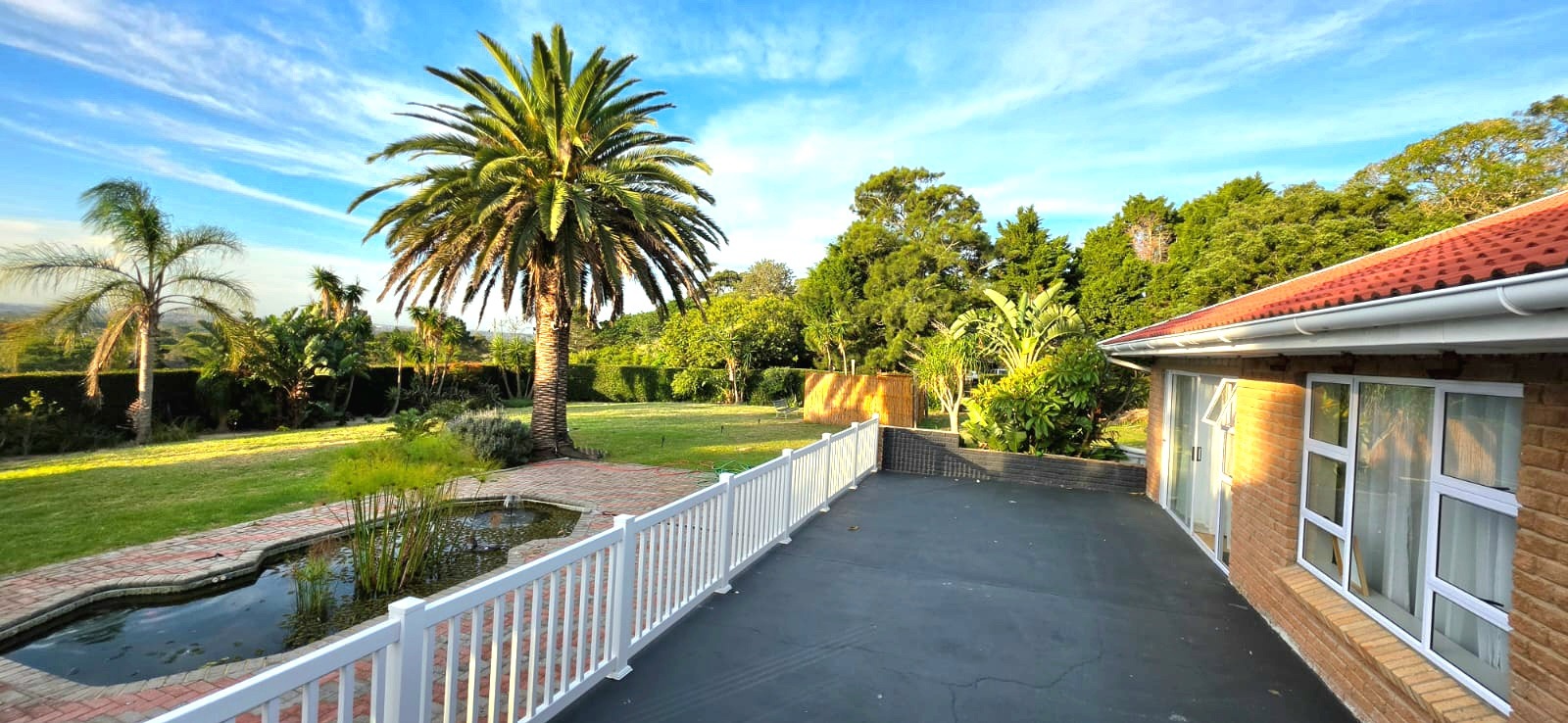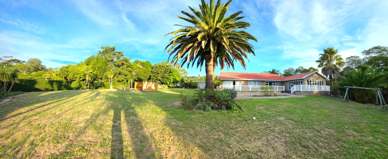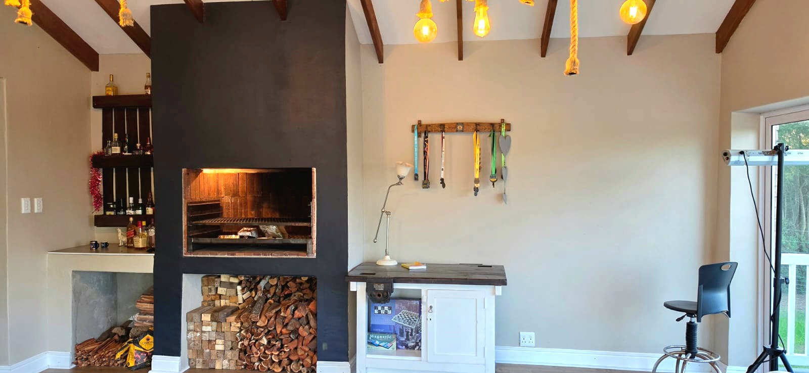 The main residence, beautifully renovated, features 4 well-sized bedrooms, 3 bathrooms (including 2 en-suites), and a seamless flow between the open-plan kitchen, dining area, and spacious lounge with fireplace. Stacker doors lead to a covered braai patio and veranda, creating effortless indoor-outdoor living.
