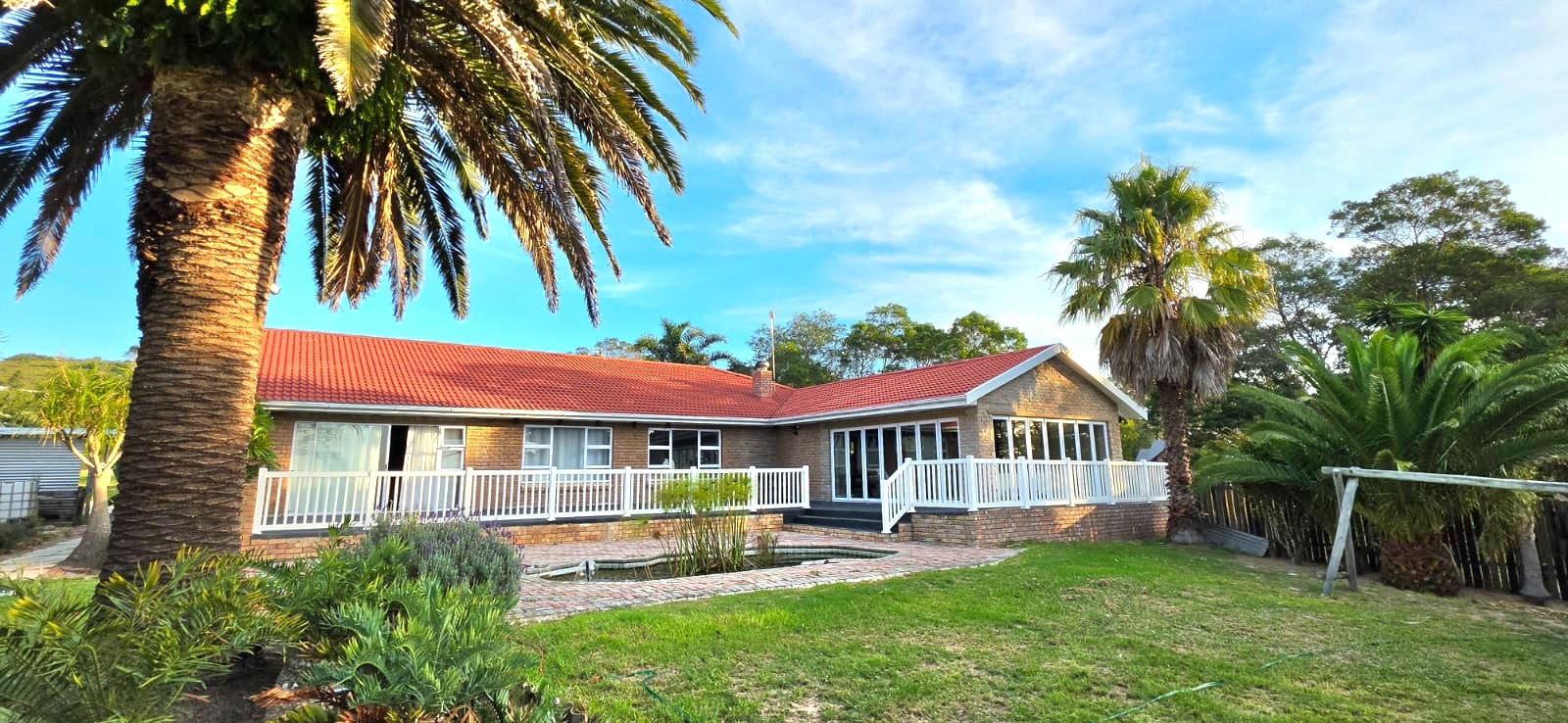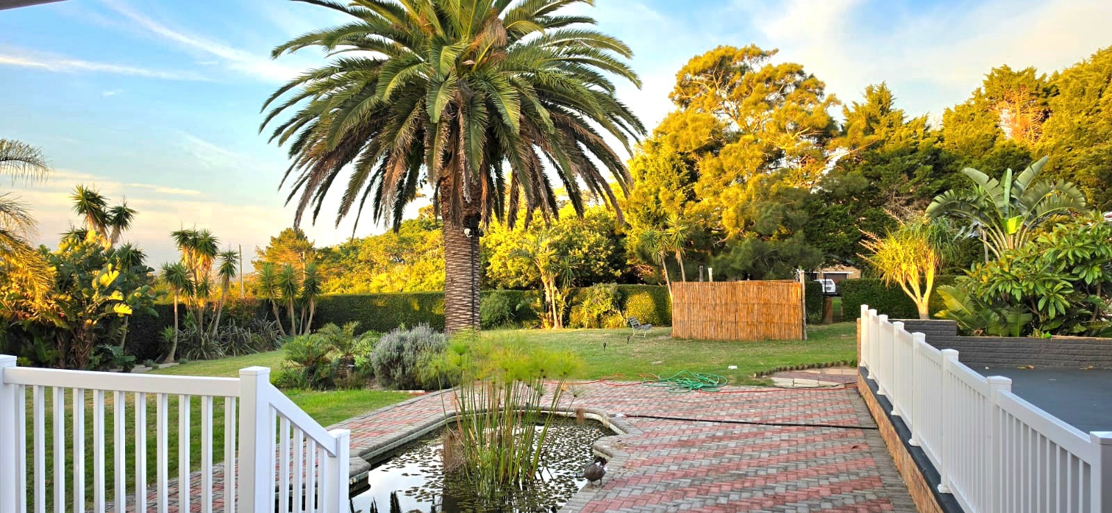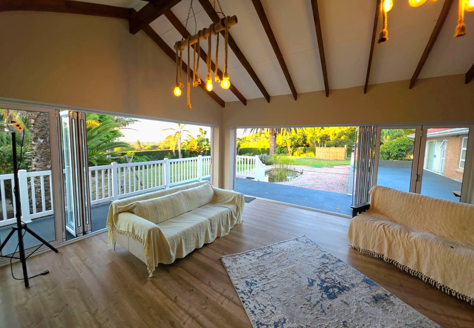 The main residence, beautifully renovated, features 4 well-sized bedrooms, 3 bathrooms (including 2 en-suites), and a seamless flow between the open-plan kitchen, dining area, and spacious lounge with fireplace. Stacker doors lead to a covered braai patio and veranda, creating effortless indoor-outdoor living.