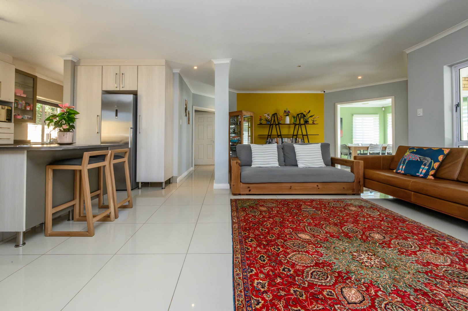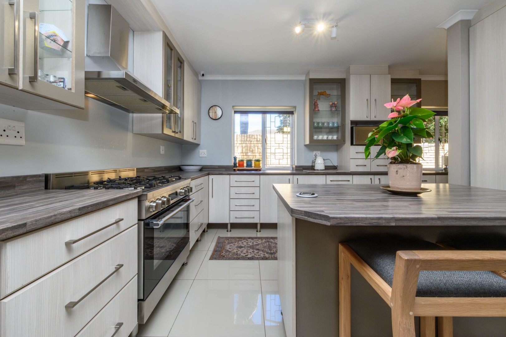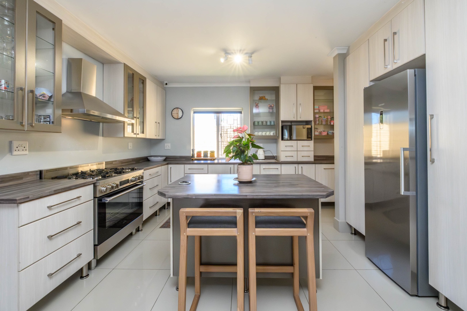 Step inside to find a thoughtfully designed interior featuring living areas, a dedicated dining room, and a well-appointed kitchen with a pantry and separate scullery. A standout feature is the spacious braai room, which serves as an enclosed patio. Perfect addition for those that love to entertain or have a chilled braai after a long day. This area, with its built-in braai and stacker-doors, seamlessly connects indoor and outdoor living, making it perfect for entertaining year-round. The home benefits from abundant natural light throughout, enhancing its warm and airy atmosphere.