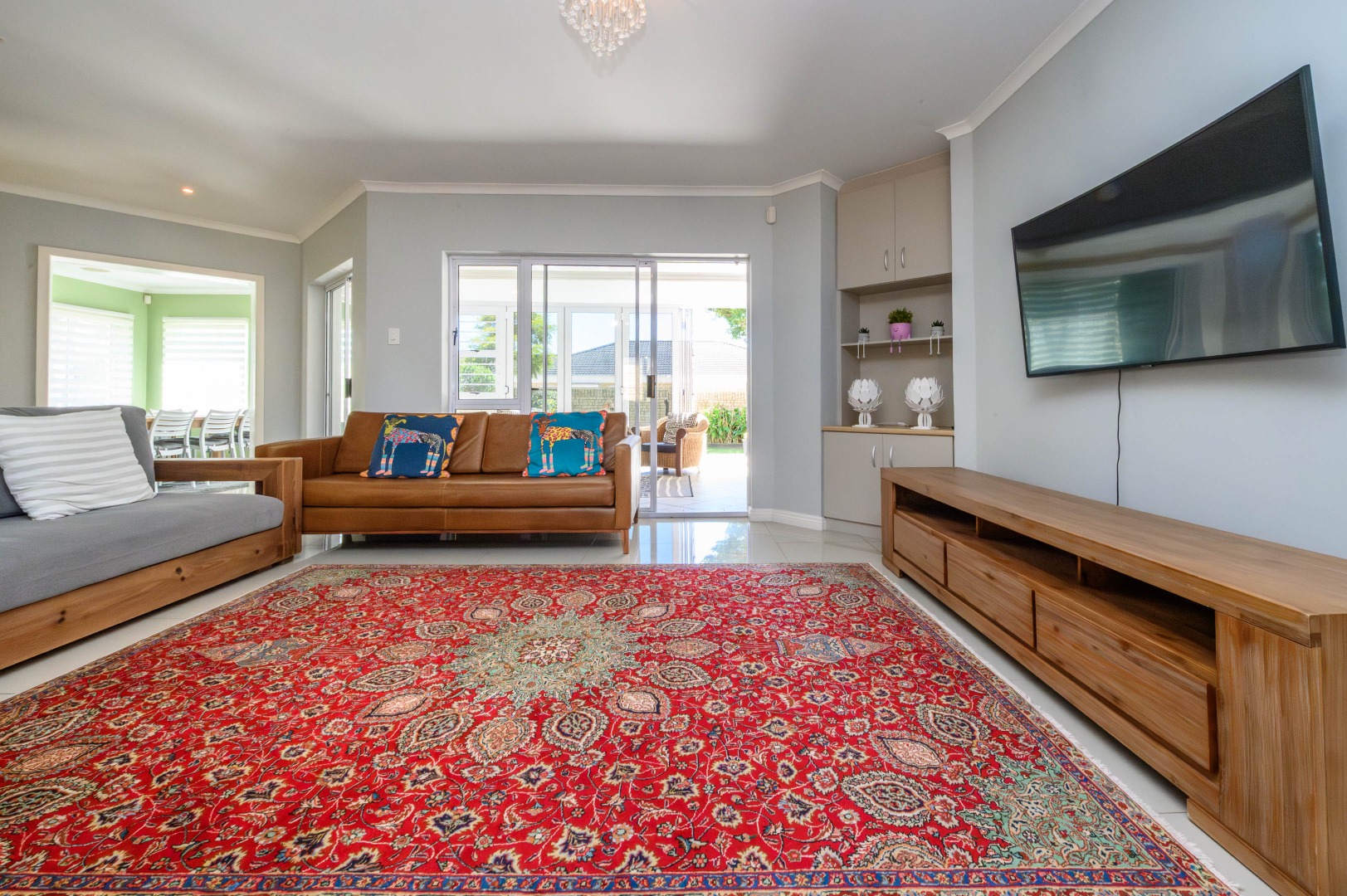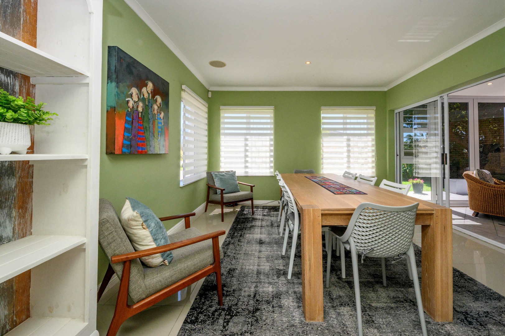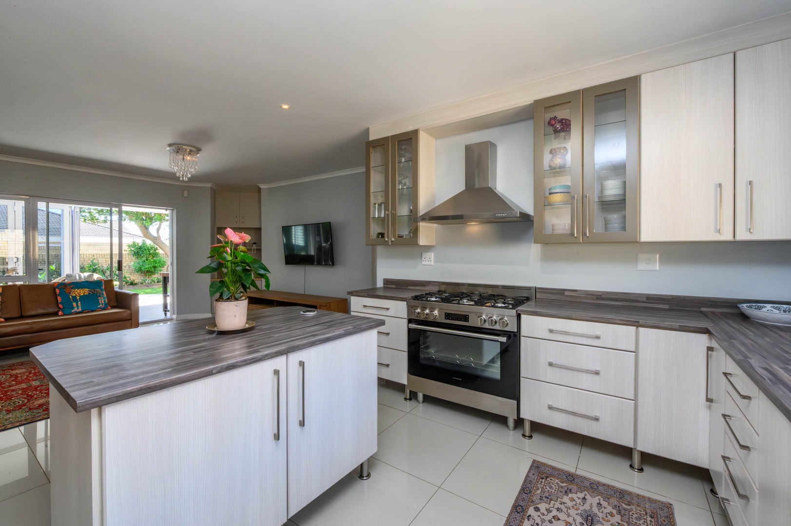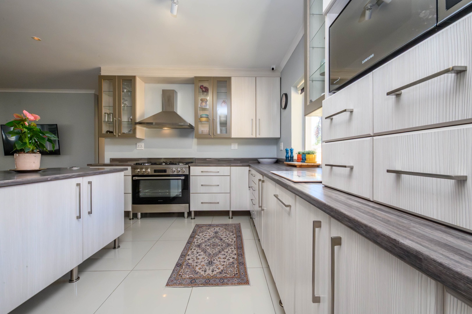 Step inside to find a thoughtfully designed interior featuring living areas, a dedicated dining room, and a well-appointed kitchen with a pantry and separate scullery. A standout feature is the spacious braai room, which serves as an enclosed patio. Perfect addition for those that love to entertain or have a chilled braai after a long day. This area, with its built-in braai and stacker-doors, seamlessly connects indoor and outdoor living, making it perfect for entertaining year-round. The home benefits from abundant natural light throughout, enhancing its warm and airy atmosphere.