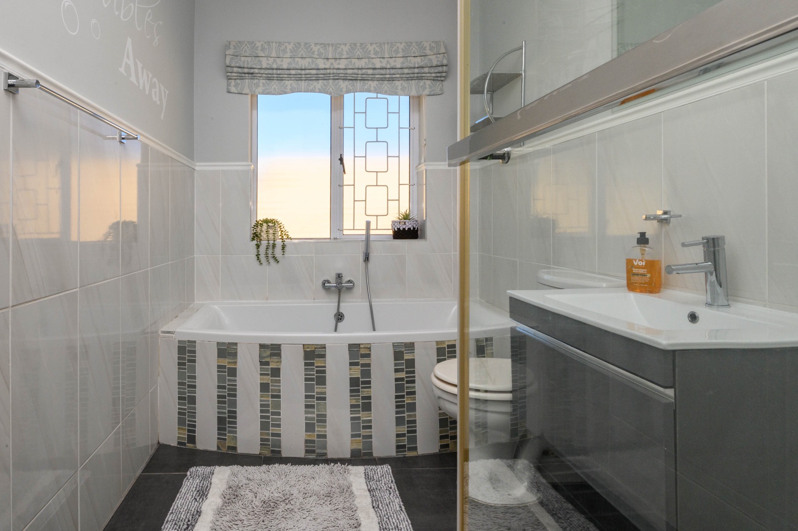 Accommodation includes three comfortable bedrooms, all with built-in cupboards and the main bedroom boasts an en-suite bathroom with a walk-in shower. The family bathroom is a full bathroom offering both a shower and bath, while the guest loo is perfectly located for visitors.