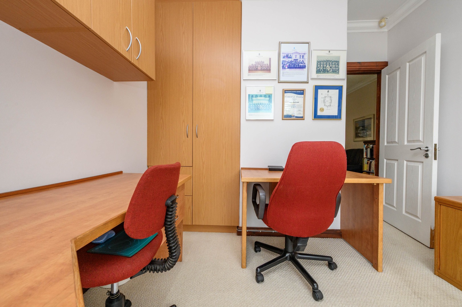 Just off the kitchen, a private courtyard leads to a versatile flatlet comprising a spacious bedroom and bathroom. Ideal as a guest suite, executive home office, hobby studio, accommodation for live-in assistance, or a private space for extended family, this addition offers exceptional flexibility.