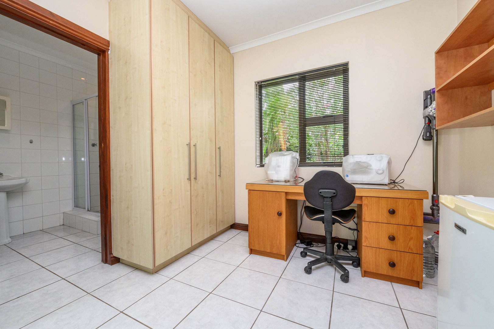 Just off the kitchen, a private courtyard leads to a versatile flatlet comprising a spacious bedroom and bathroom. Ideal as a guest suite, executive home office, hobby studio, accommodation for live-in assistance, or a private space for extended family, this addition offers exceptional flexibility.