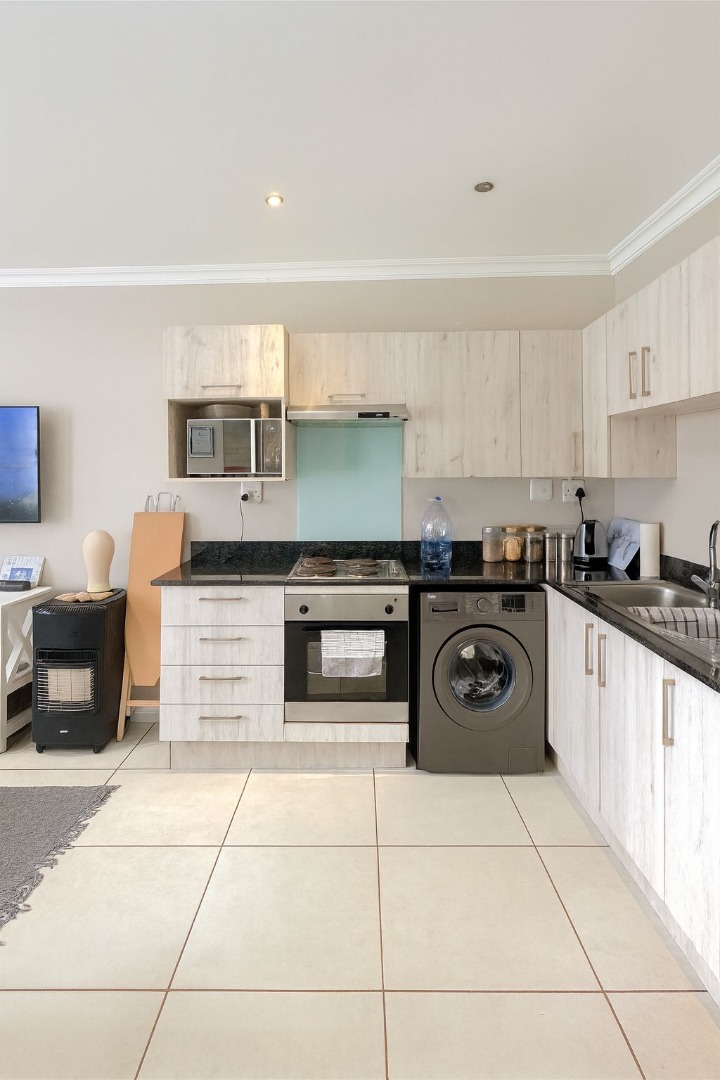 This light-filled first-floor apartment offers modern living in a fantastic location. The open-plan layout flows onto a spacious balcony overlooking 8th Avenue, complete with a built-in braai — perfect for relaxing or entertaining.