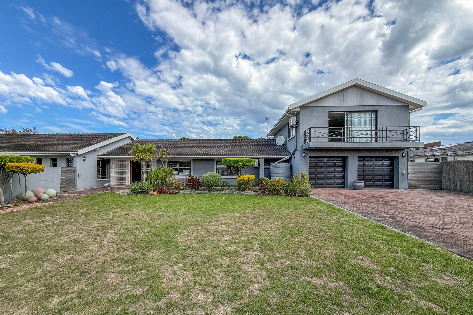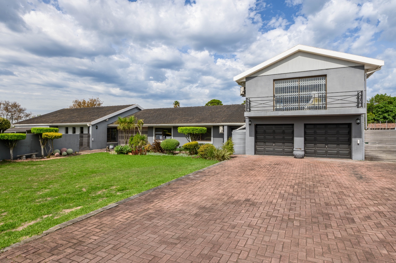 From the moment you enter, you are welcomed by a generous garden that opens up to a peaceful pool and stoep area, with a balcony that invites you to pause, breathe, and take it all in.