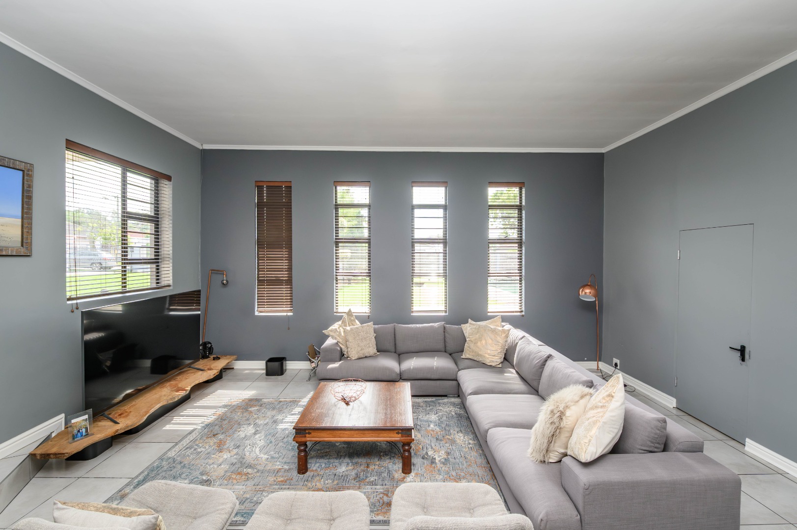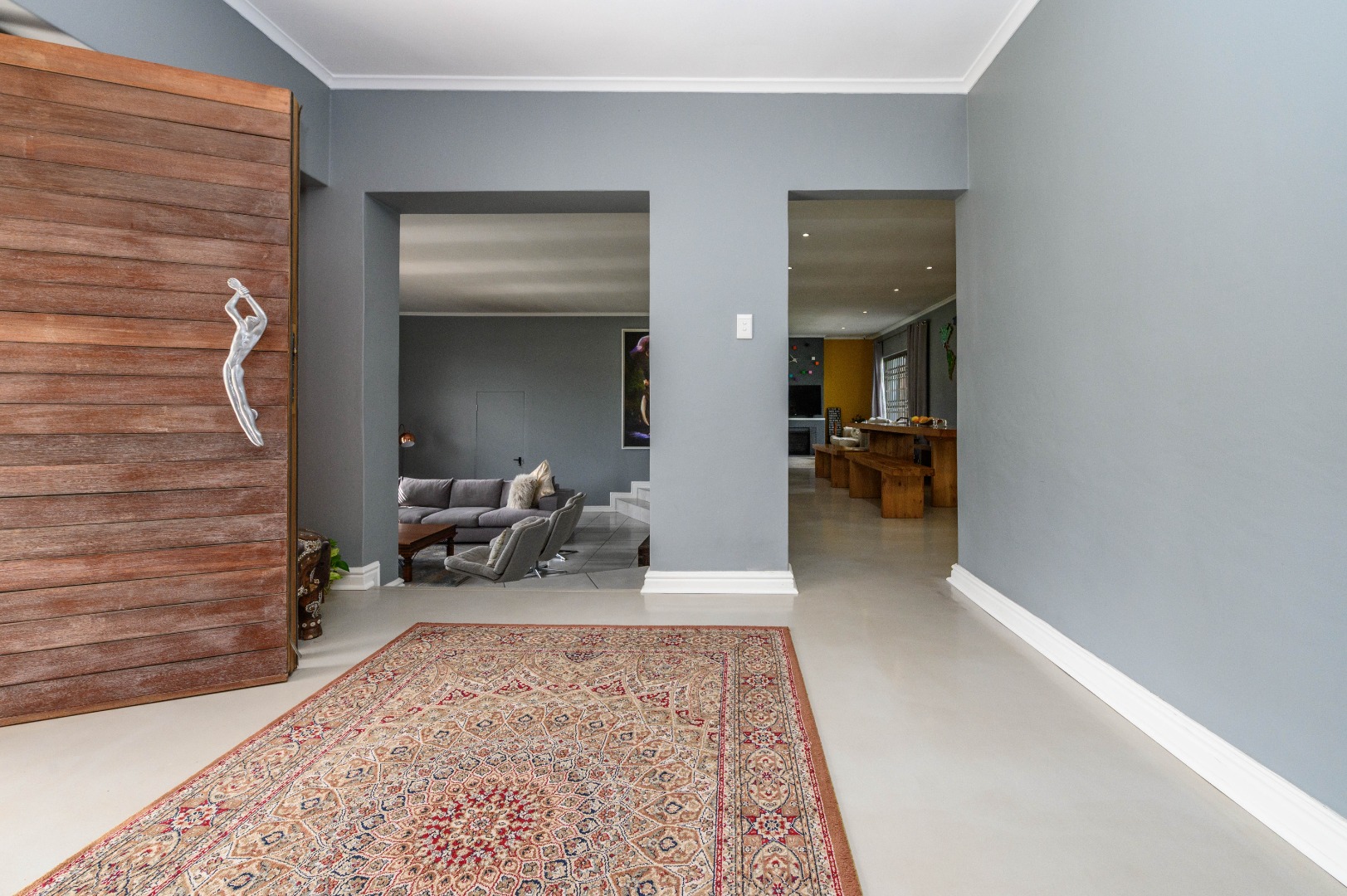 Inside, the home offers a beautiful balance of finishes — porcelain tiles, screed flooring, and warm wooden touches — creating spaces that feel both elegant and lived-in.