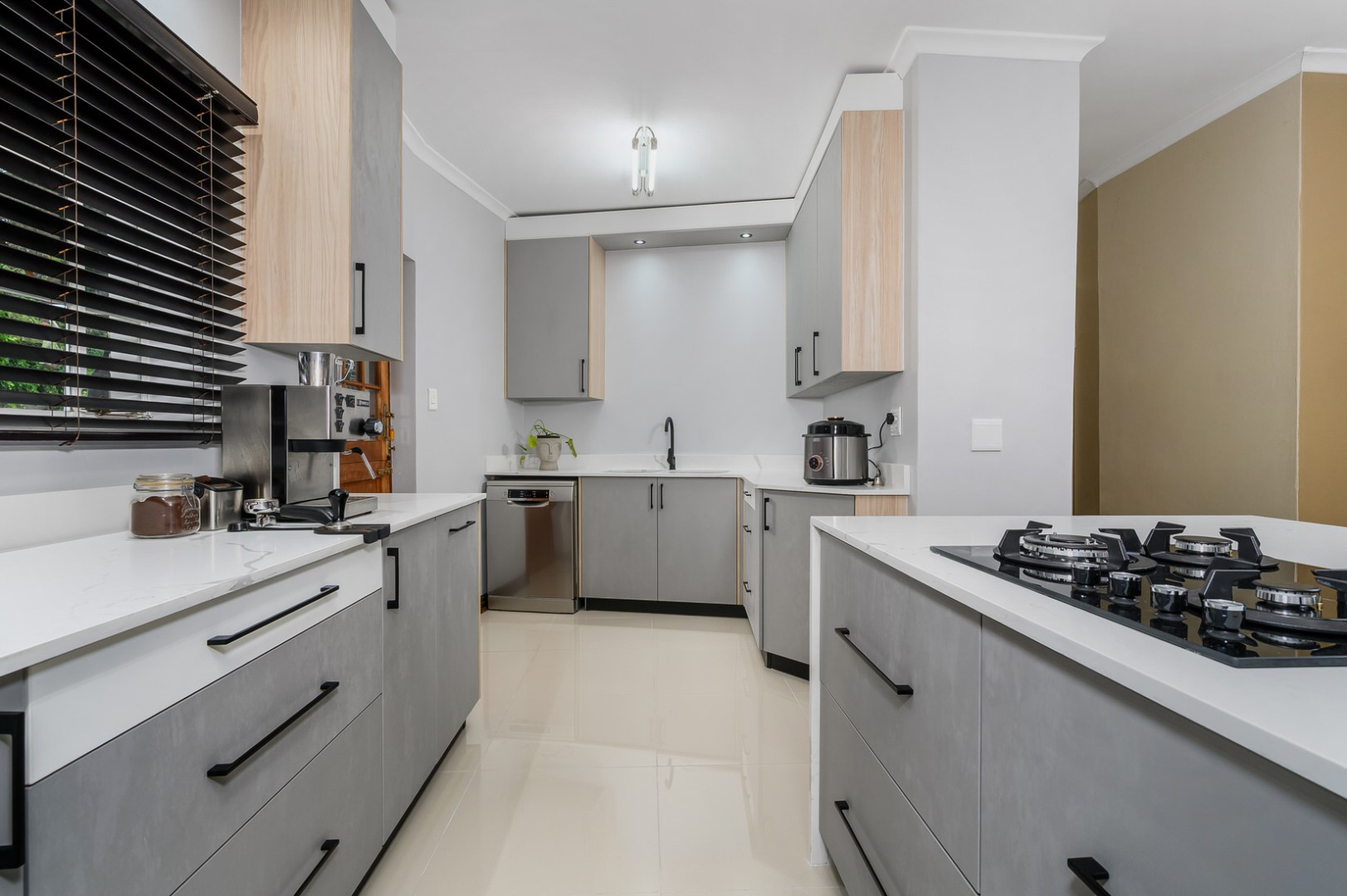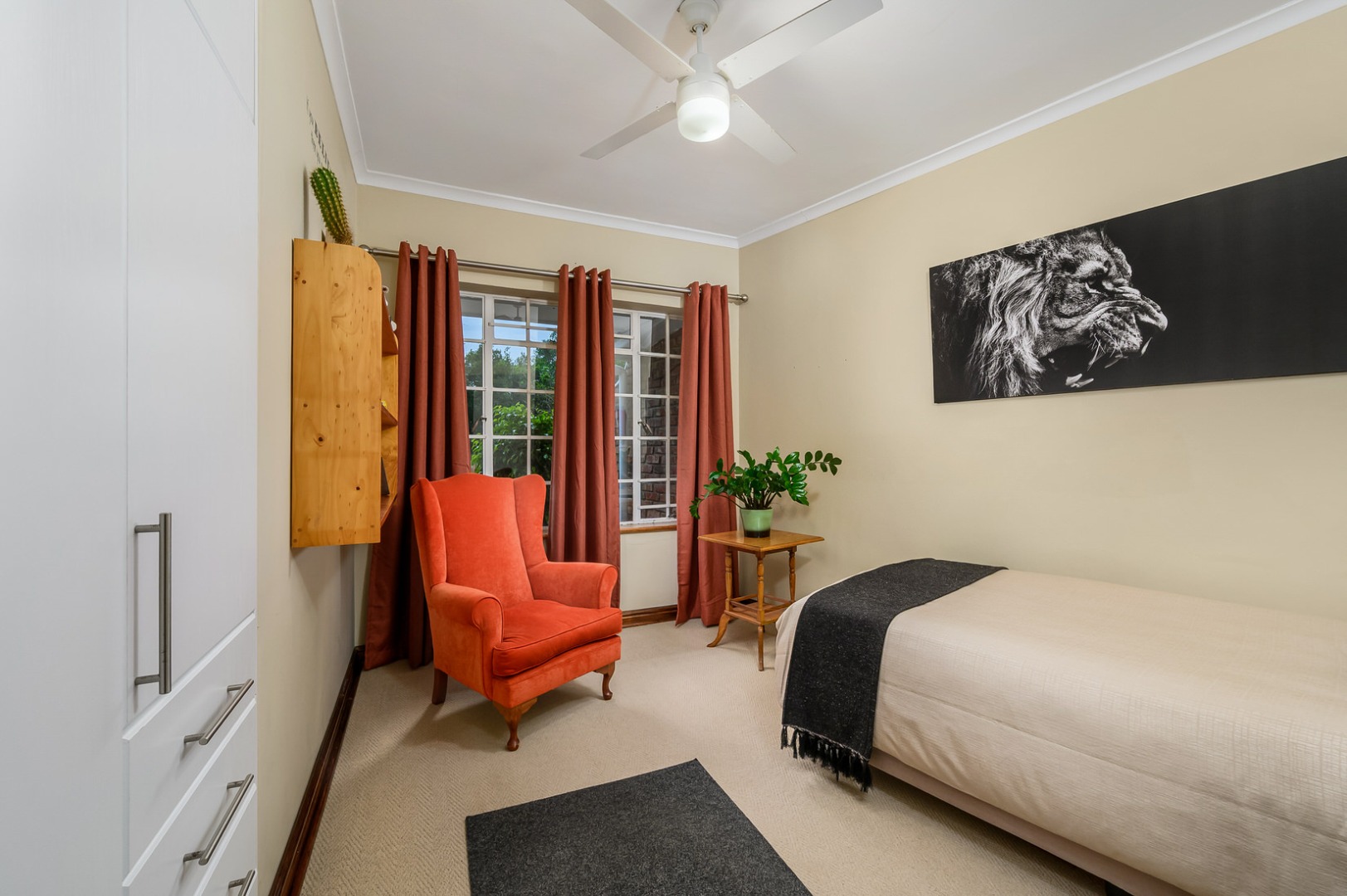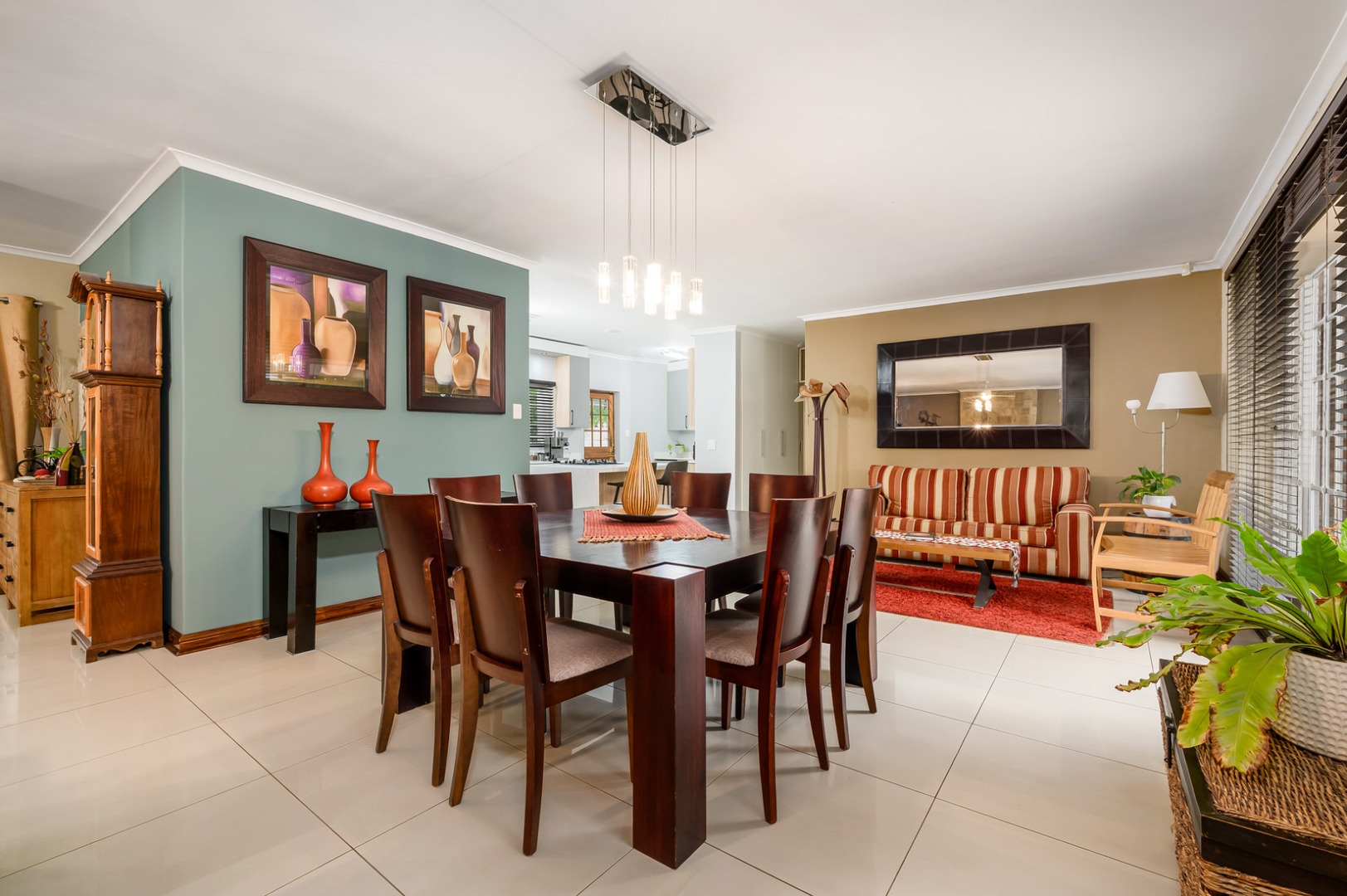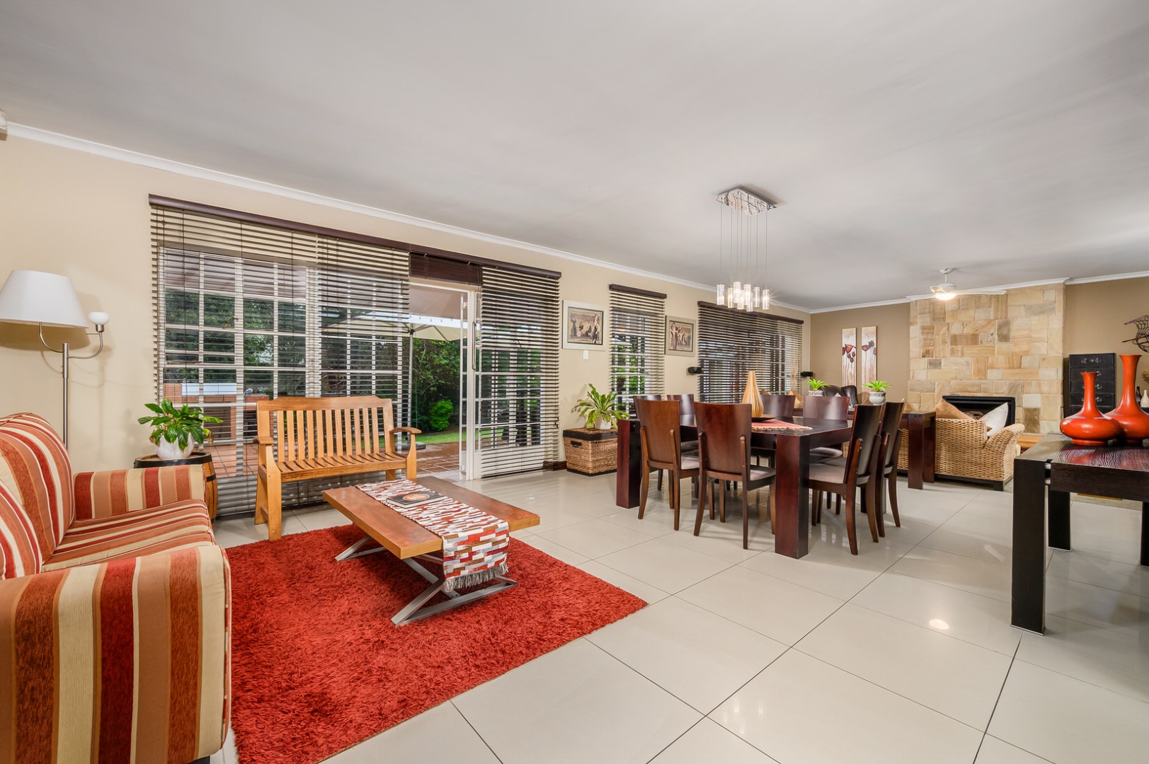 Entertainment is at the heart of this home, with a well-equipped cinema room offering the perfect space for movie nights. This leads into a welcoming braai room, complete with a fitted bar and built-in braai, opening onto the pool and outdoor patio areas—ideal for hosting guests or unwinding with family.