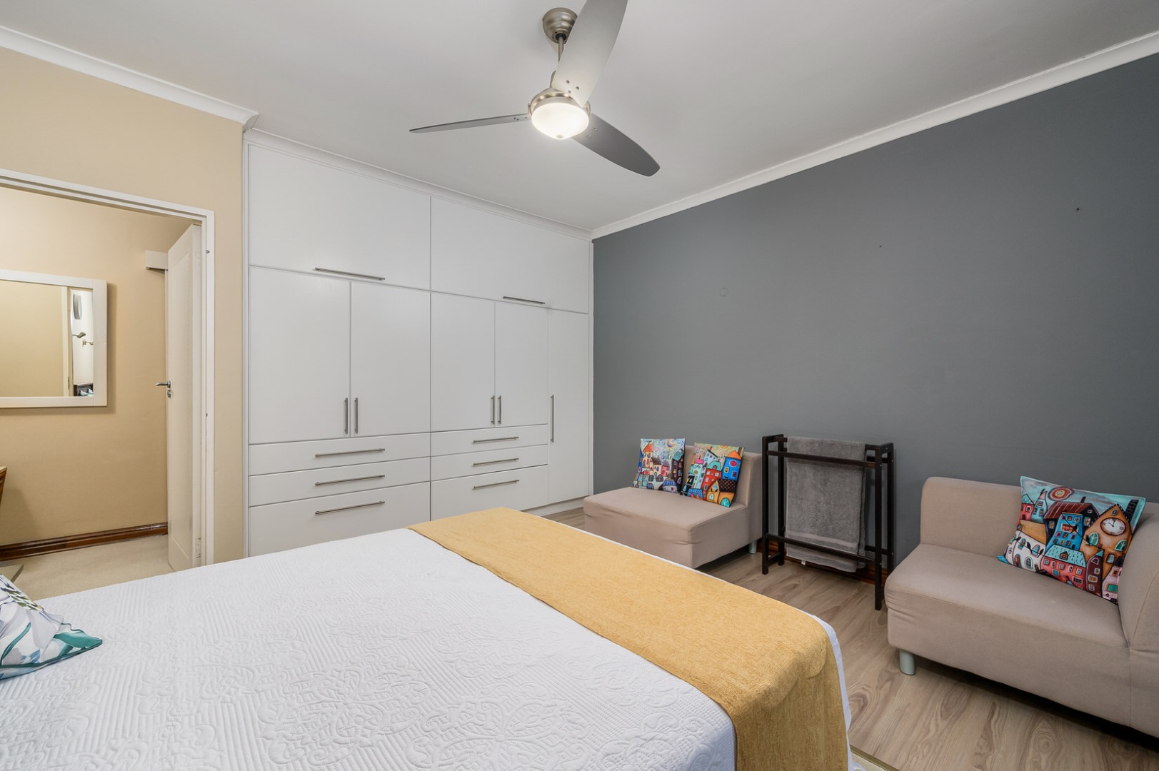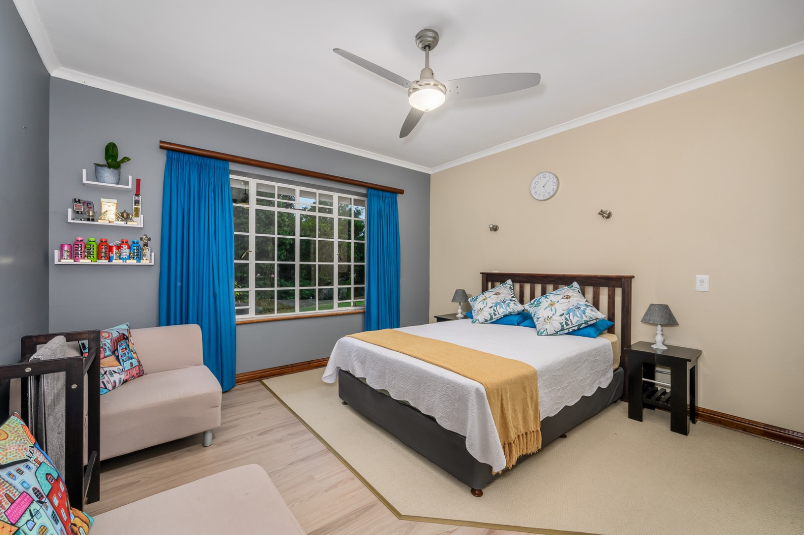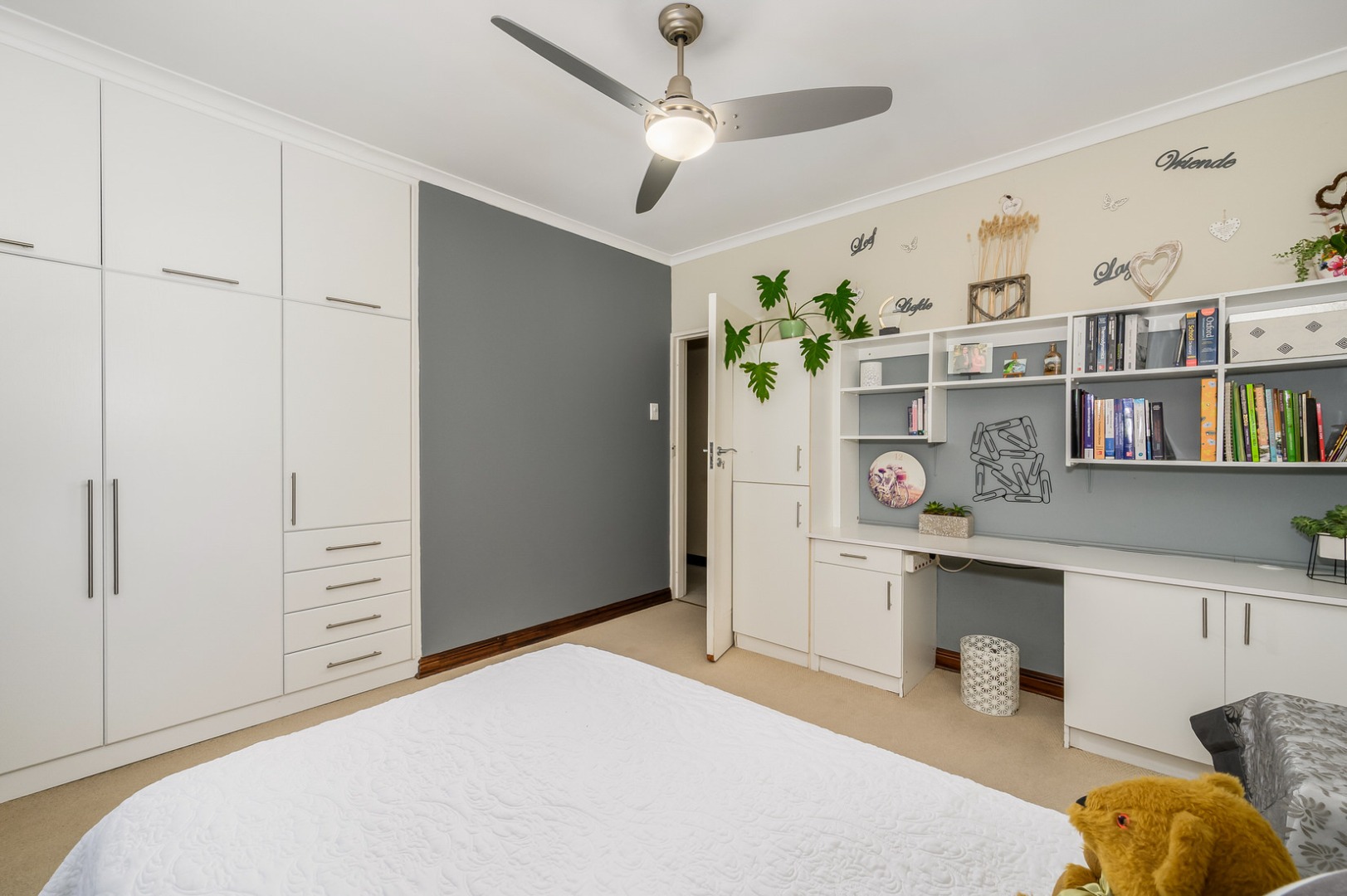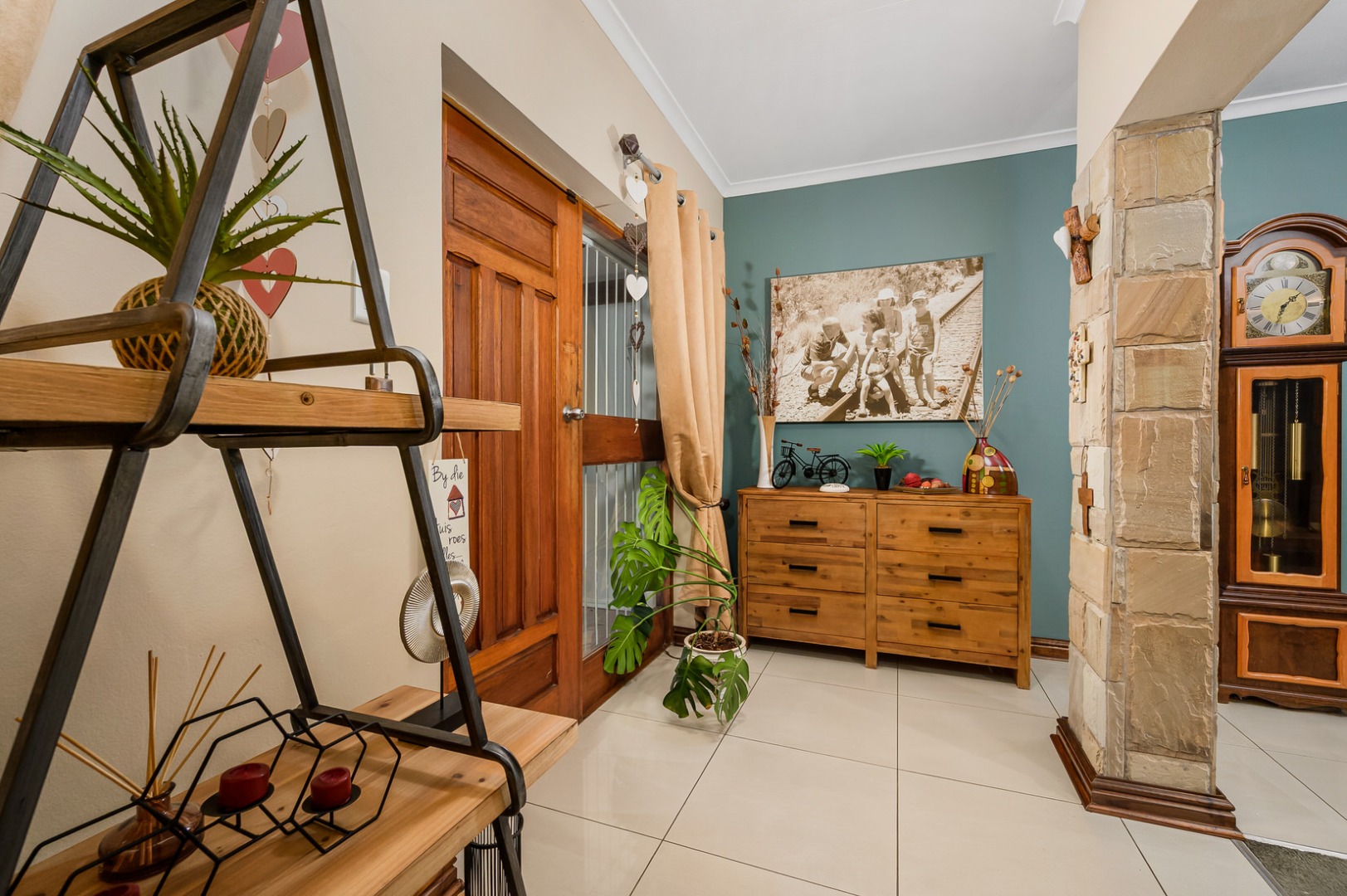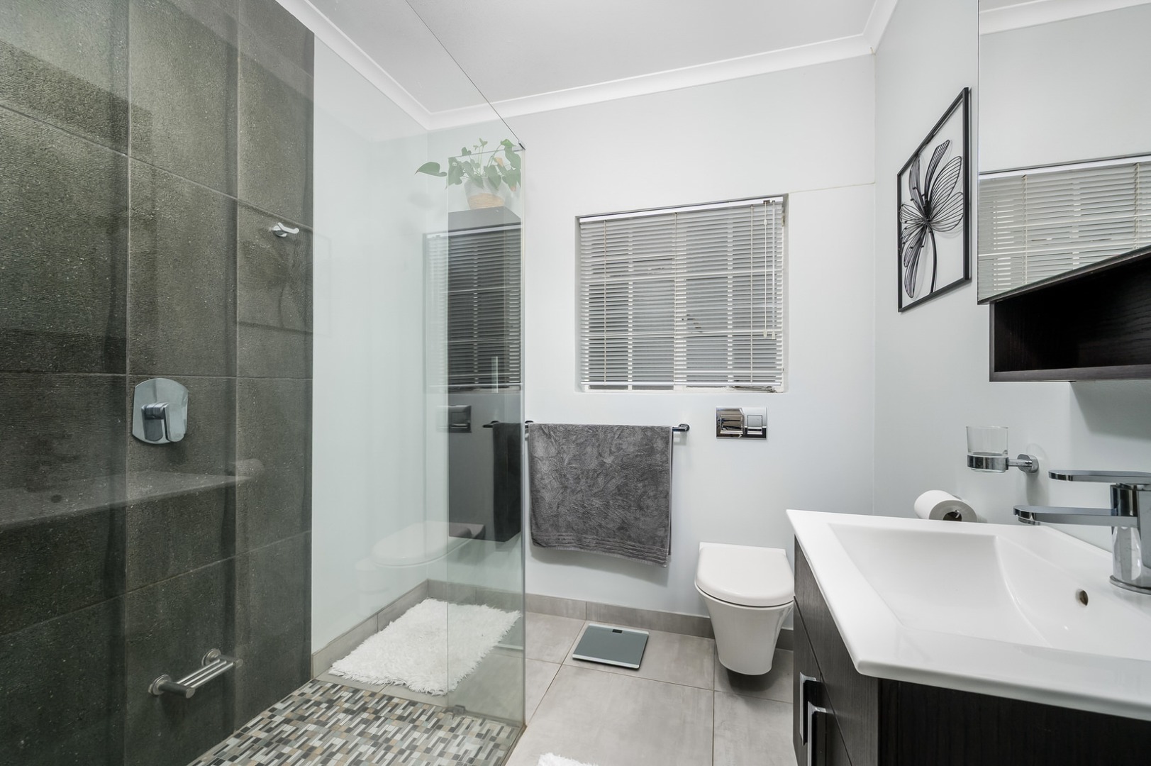 Entertainment is at the heart of this home, with a well-equipped cinema room offering the perfect space for movie nights. This leads into a welcoming braai room, complete with a fitted bar and built-in braai, opening onto the pool and outdoor patio areas—ideal for hosting guests or unwinding with family.