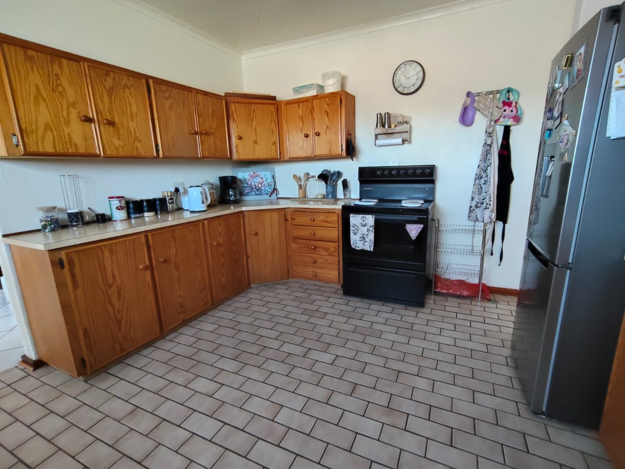 Step inside and you’ll find a warm, welcoming space featuring two well-placed air conditioners to keep the home cool during those warm desert days. The spacious kitchen, complete with a separate scullery and an abundance of built-in cupboards, is perfect for the home chef or avid gardener who enjoys preserving their own produce.