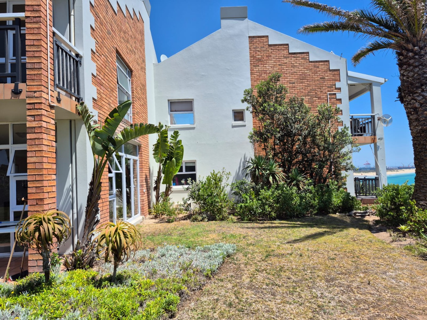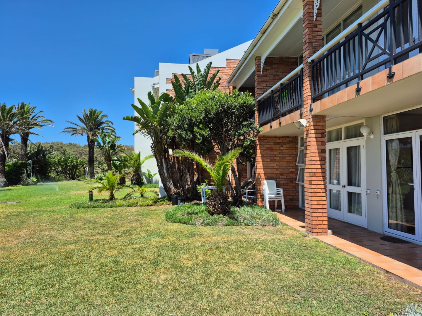 Patio stepping out into a beautiful garden with ocean views