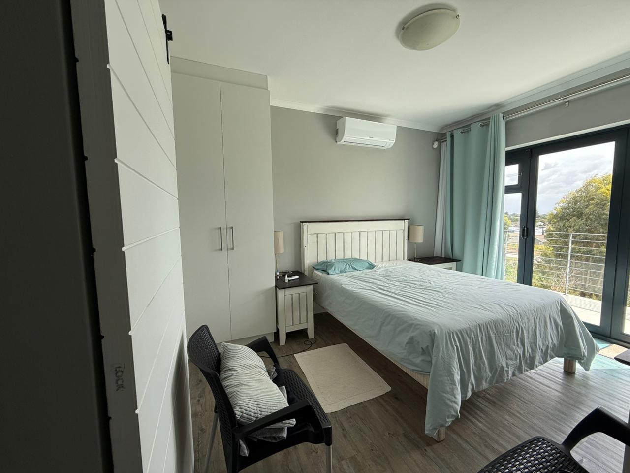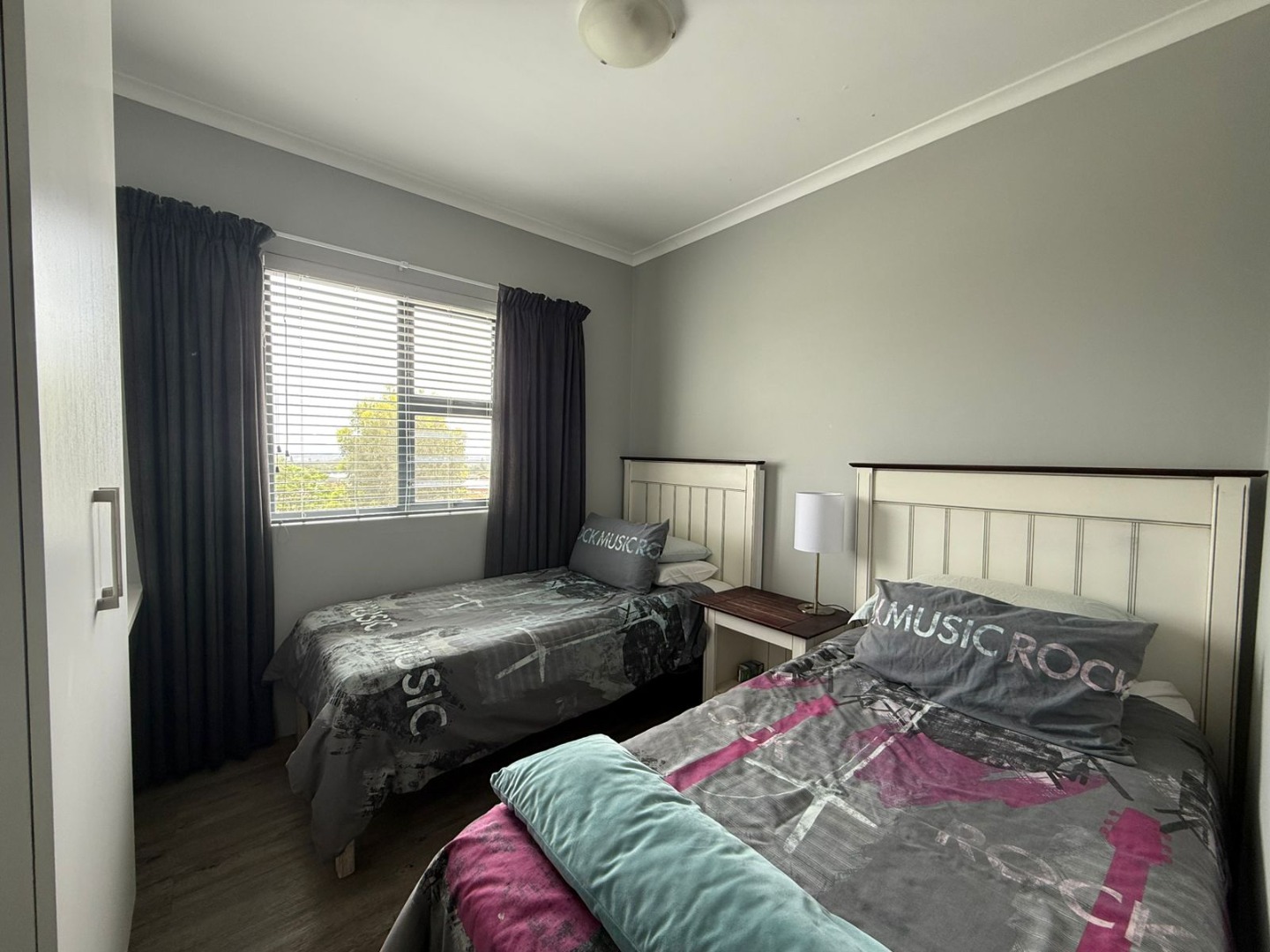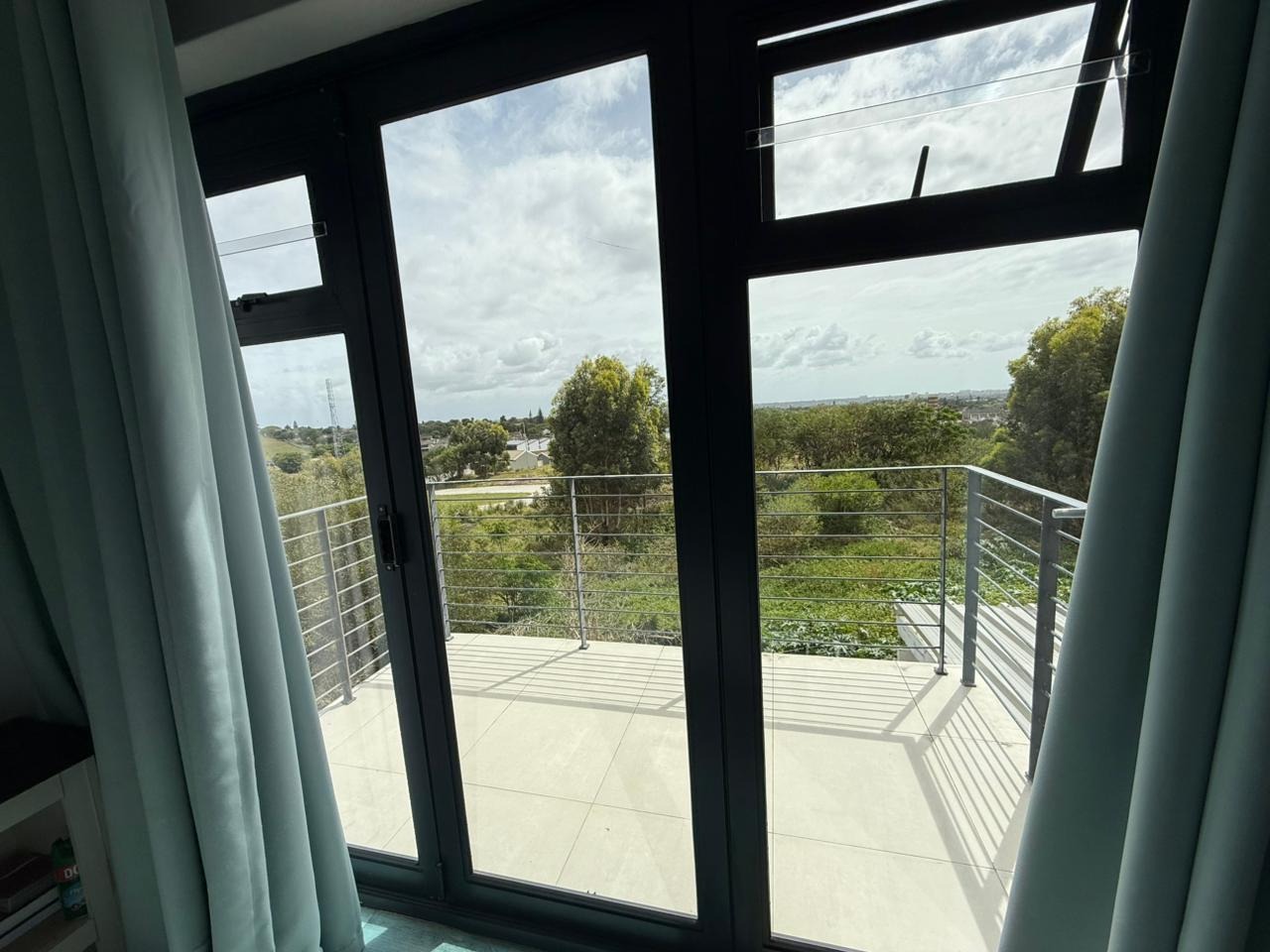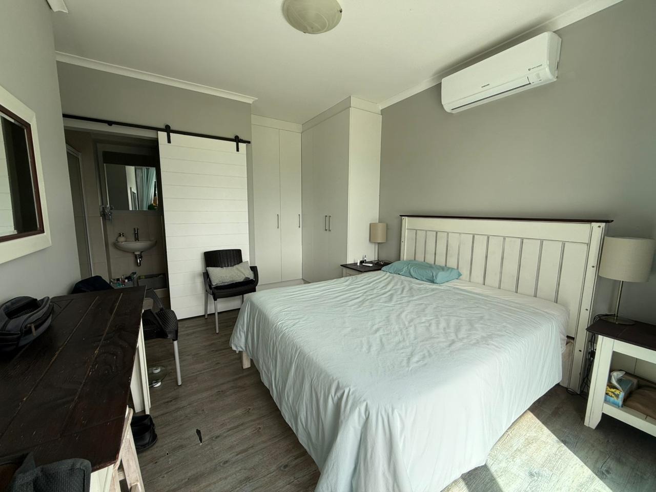 The main bedroom offers an en-suite bathroom and a private balcony. The sunny bedrooms are fitted with floor-to-ceiling cupboards, providing ample storage. Additional features include good security throughout and an installed alarm system.