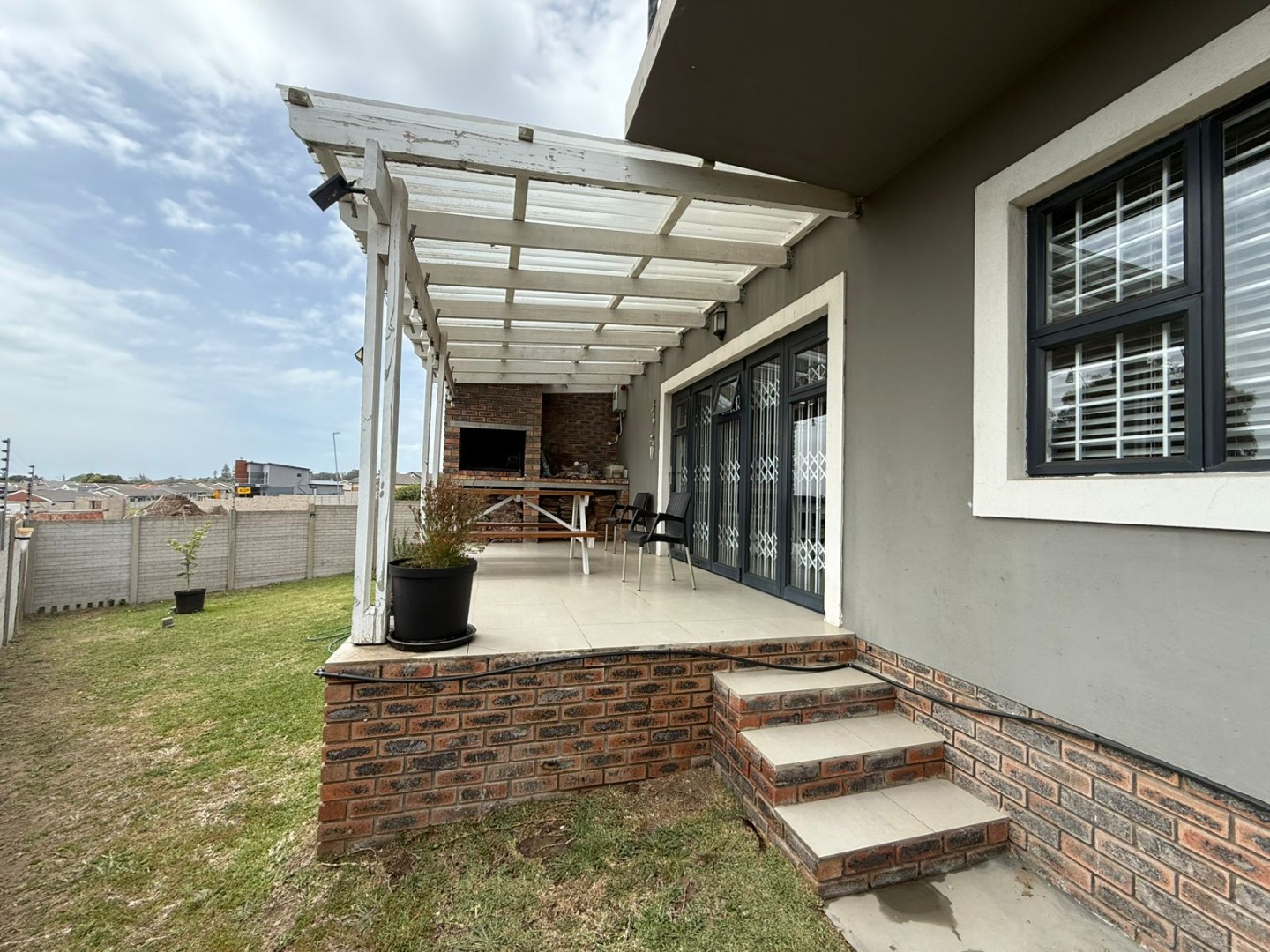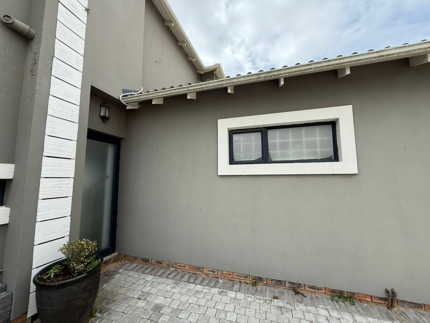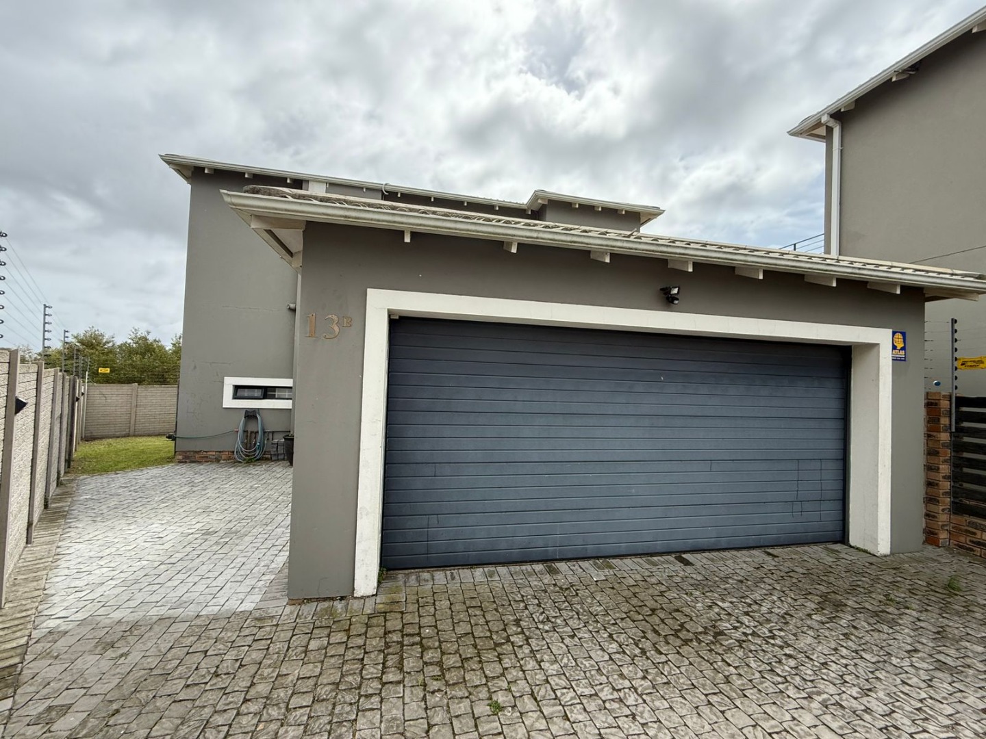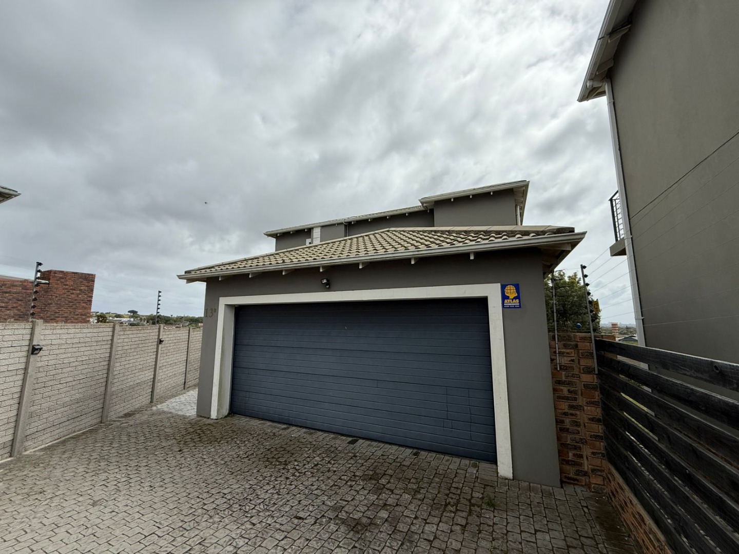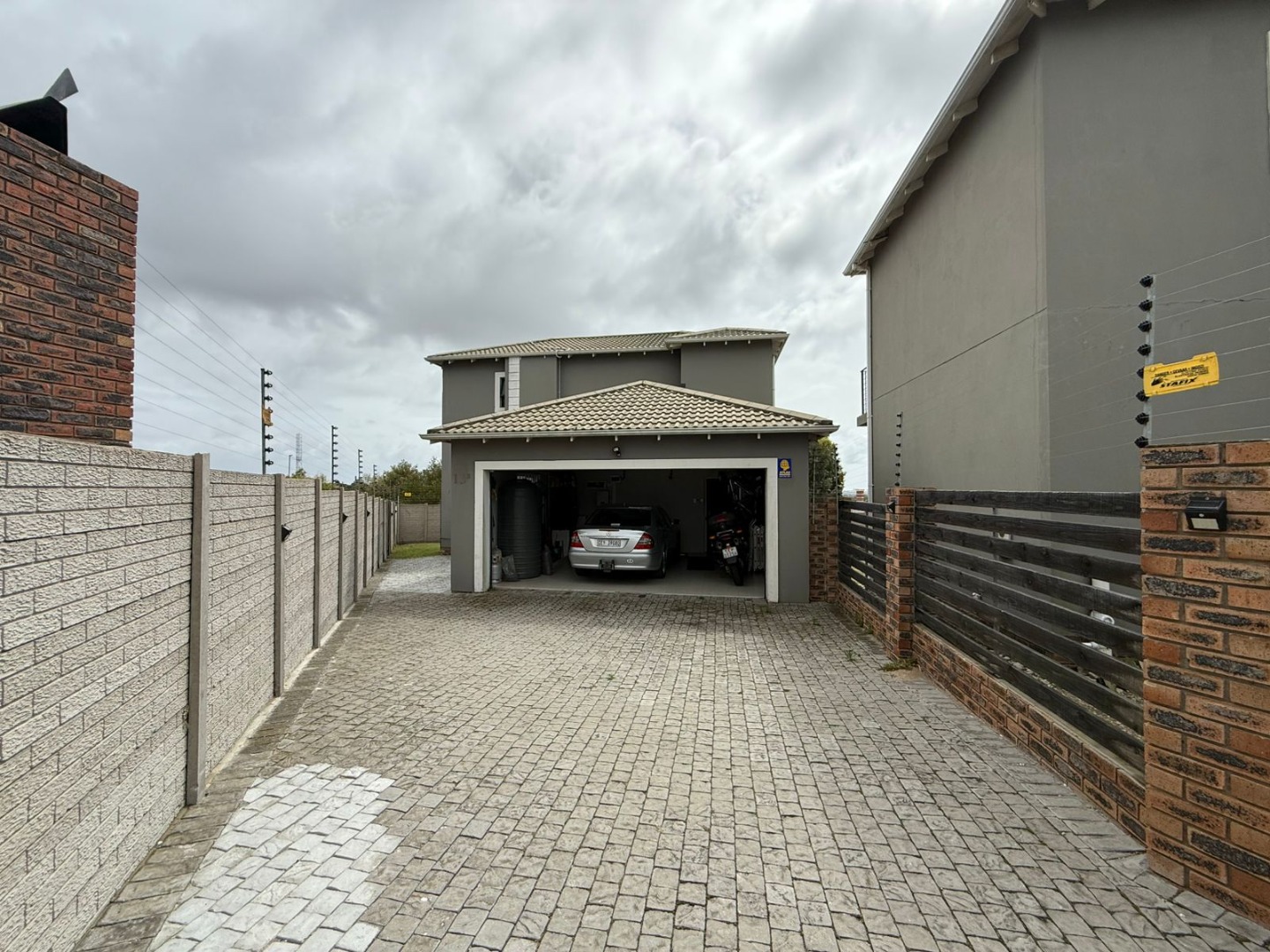 An undercover patio with a built-in braai is situated in the rear garden and flows seamlessly from the living area through stacker doors. The open-plan design includes a modern kitchen, lounge, and dining area, with a guest toilet conveniently located on the ground floor. The ground floor is finished with quality tiles, while the second floor features stylish laminated flooring. All bathrooms are neatly tiled.