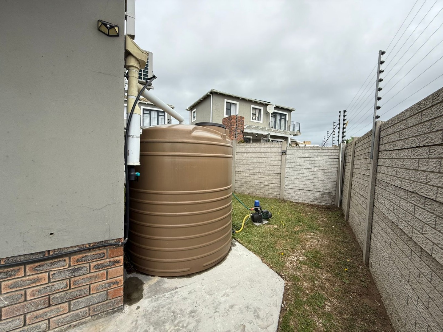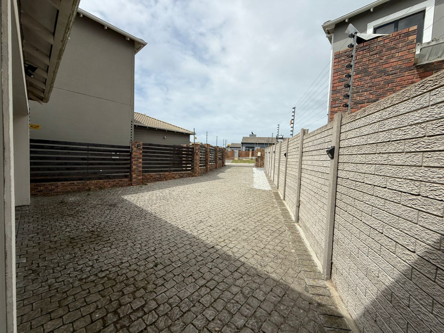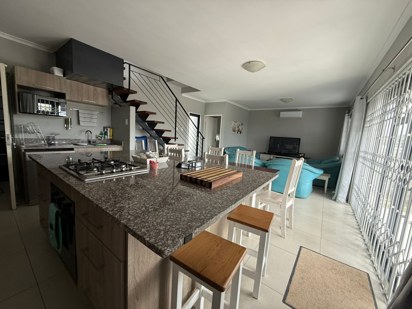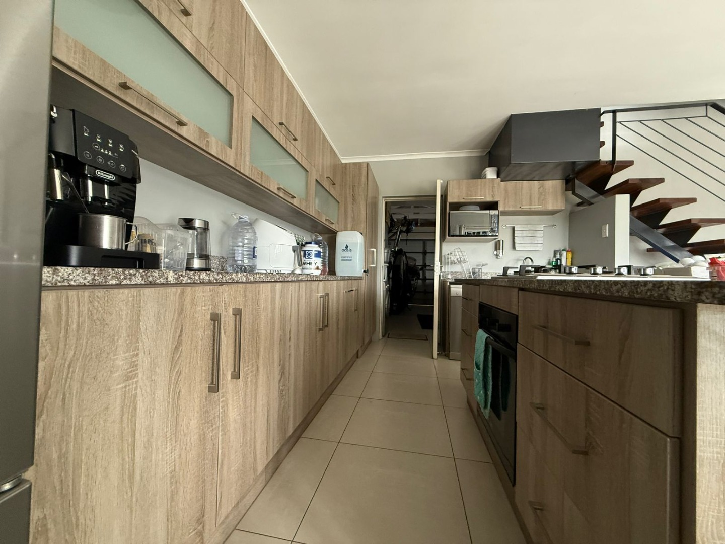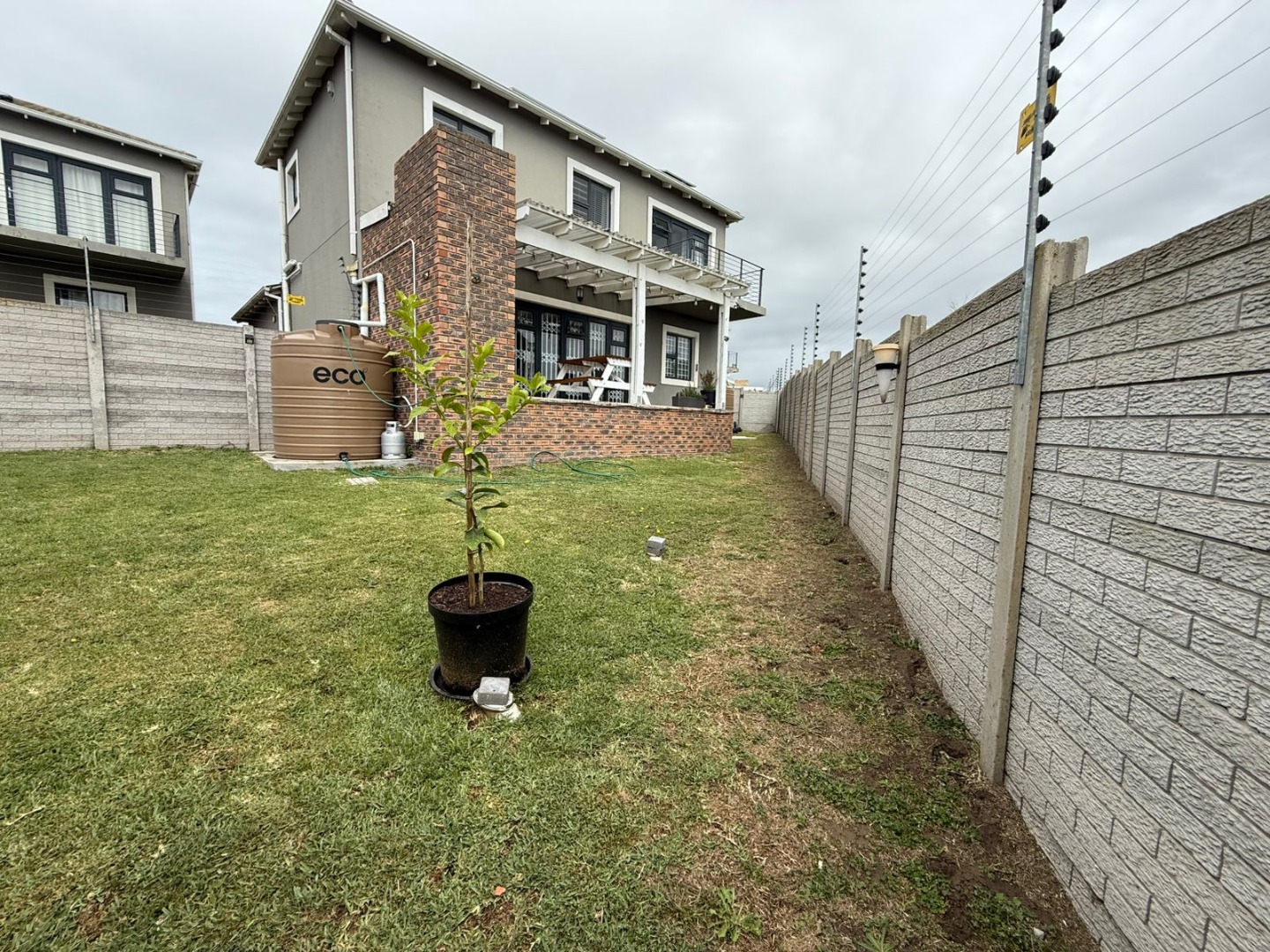 An undercover patio with a built-in braai is situated in the rear garden and flows seamlessly from the living area through stacker doors. The open-plan design includes a modern kitchen, lounge, and dining area, with a guest toilet conveniently located on the ground floor. The ground floor is finished with quality tiles, while the second floor features stylish laminated flooring. All bathrooms are neatly tiled.