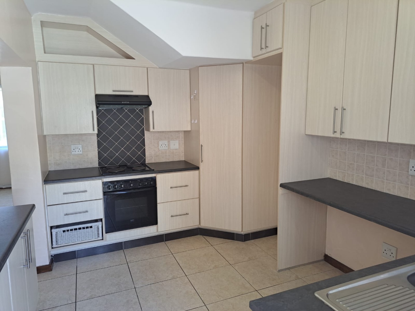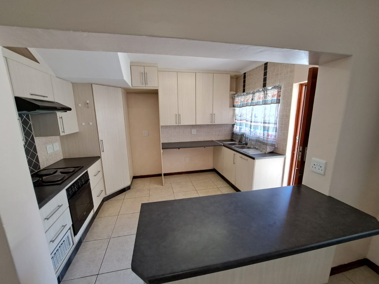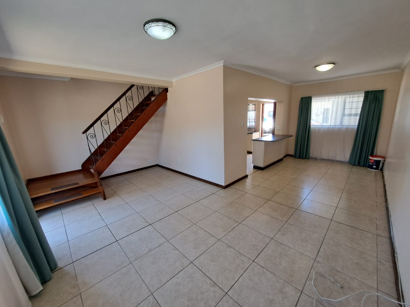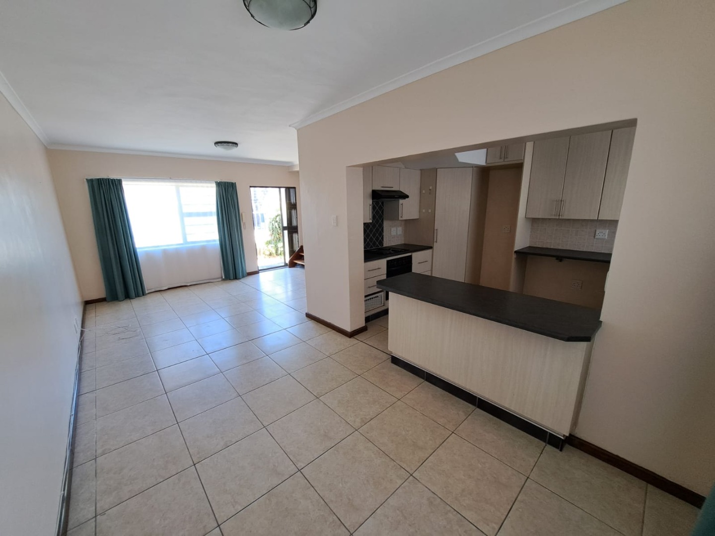 Spacious kitchen flowing into lounge area,