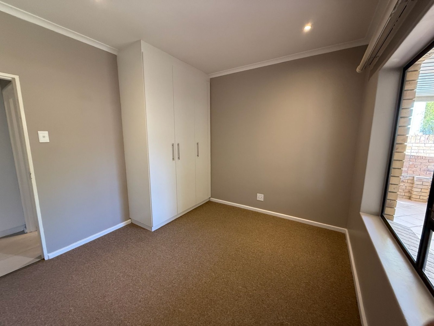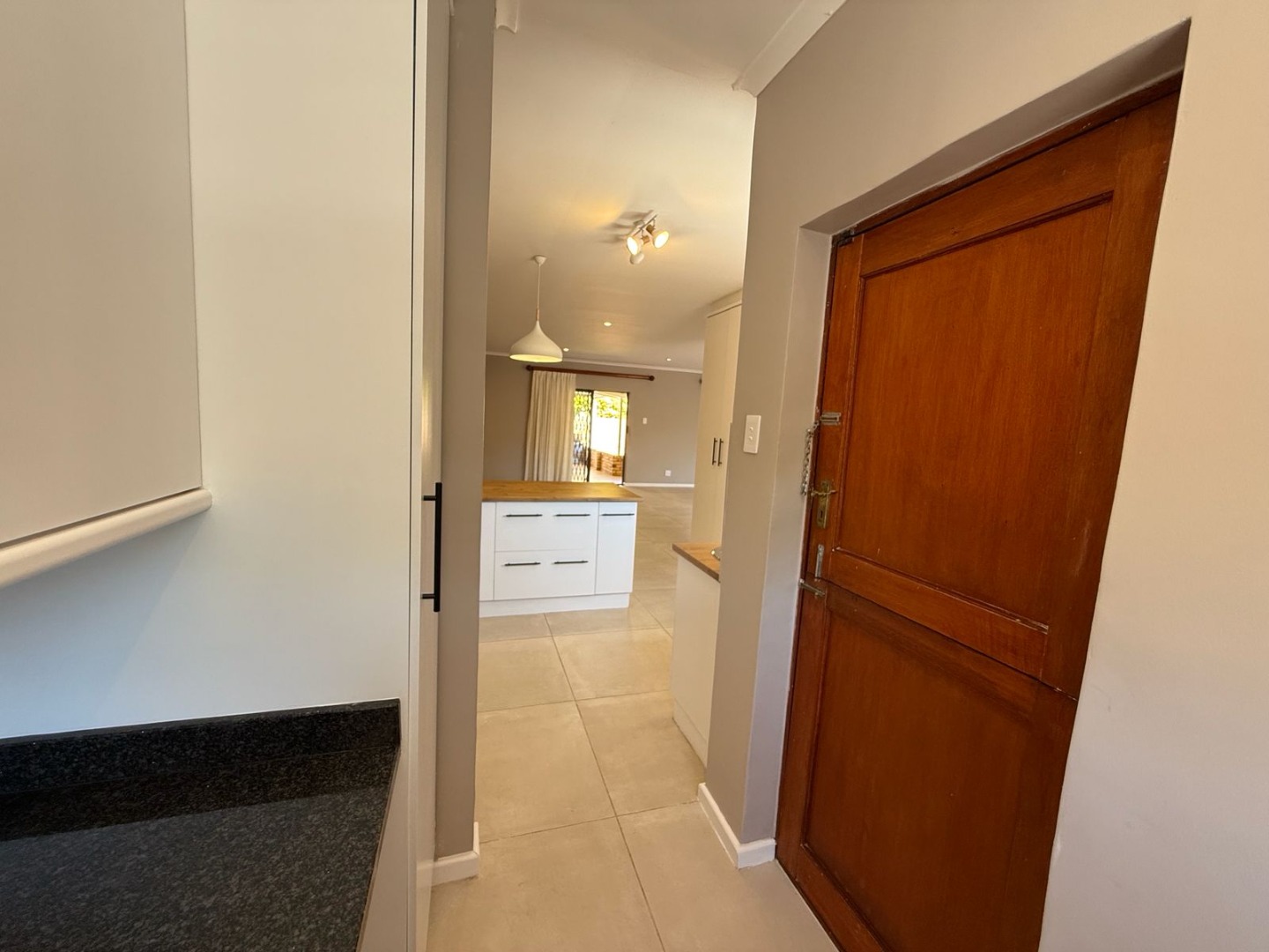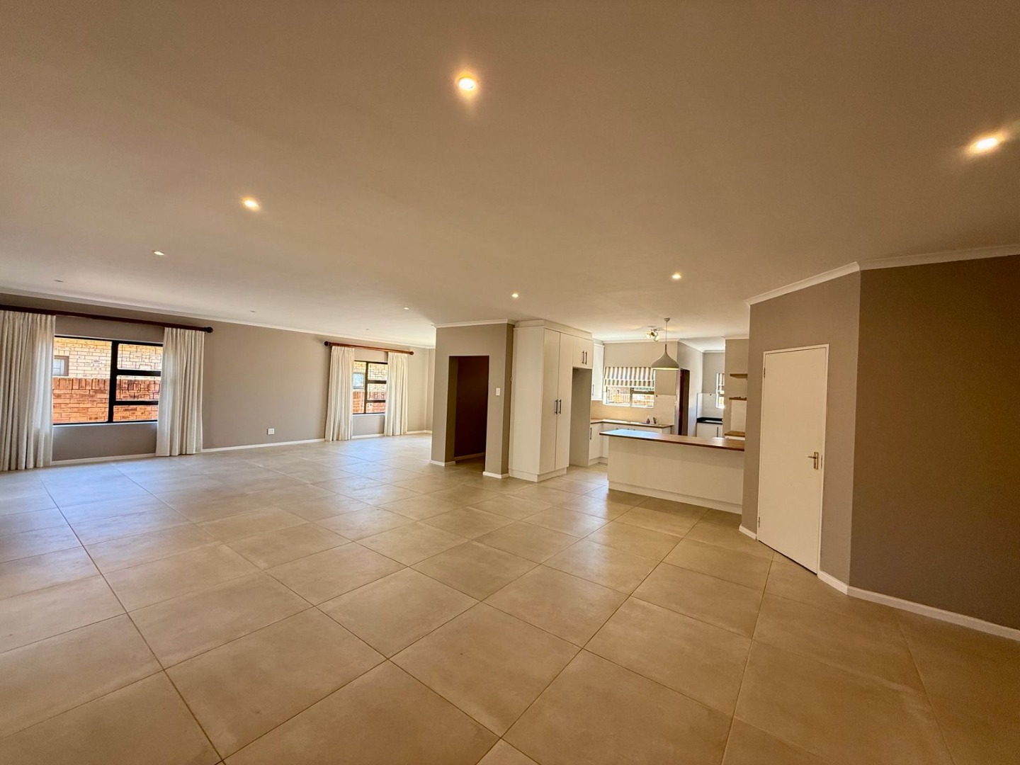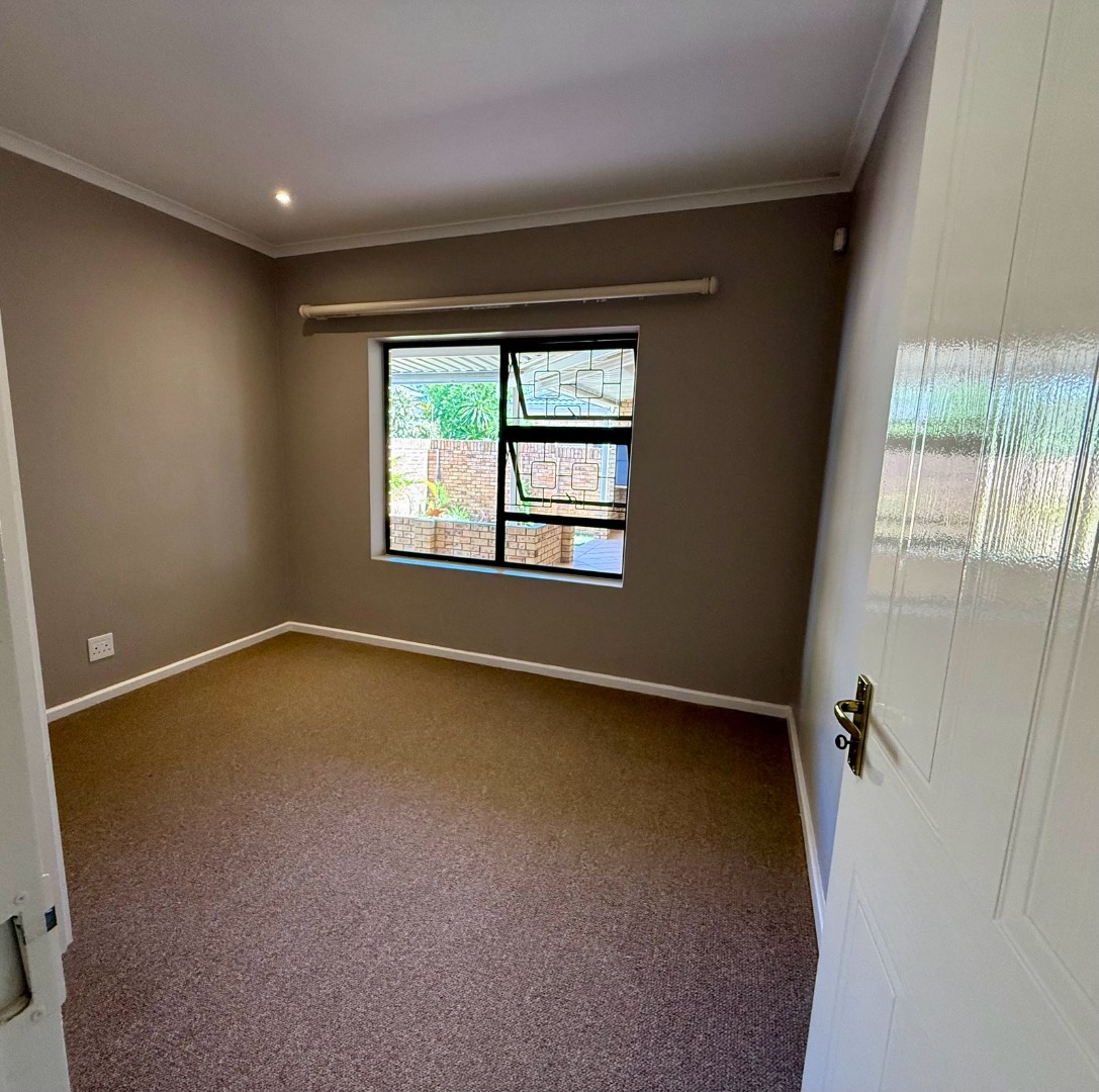 This modern 3-bedroom offers comfortable living within a secure complex in Walmer Downs, Port Elizabeth. The property features a spacious open-plan living area, tiled flooring, lighting, and newly painted walls.