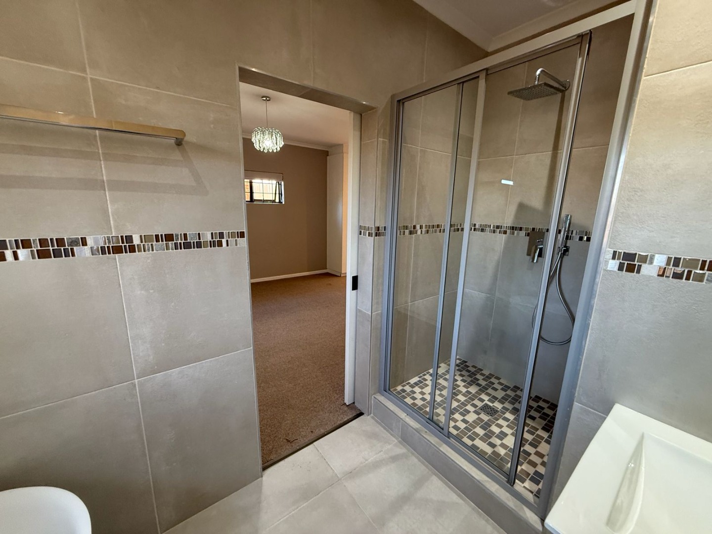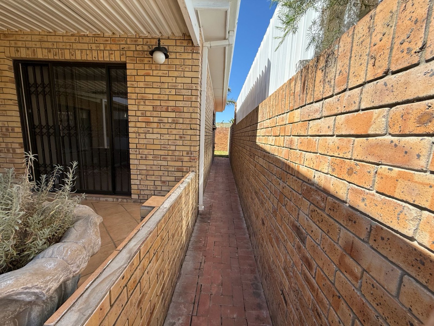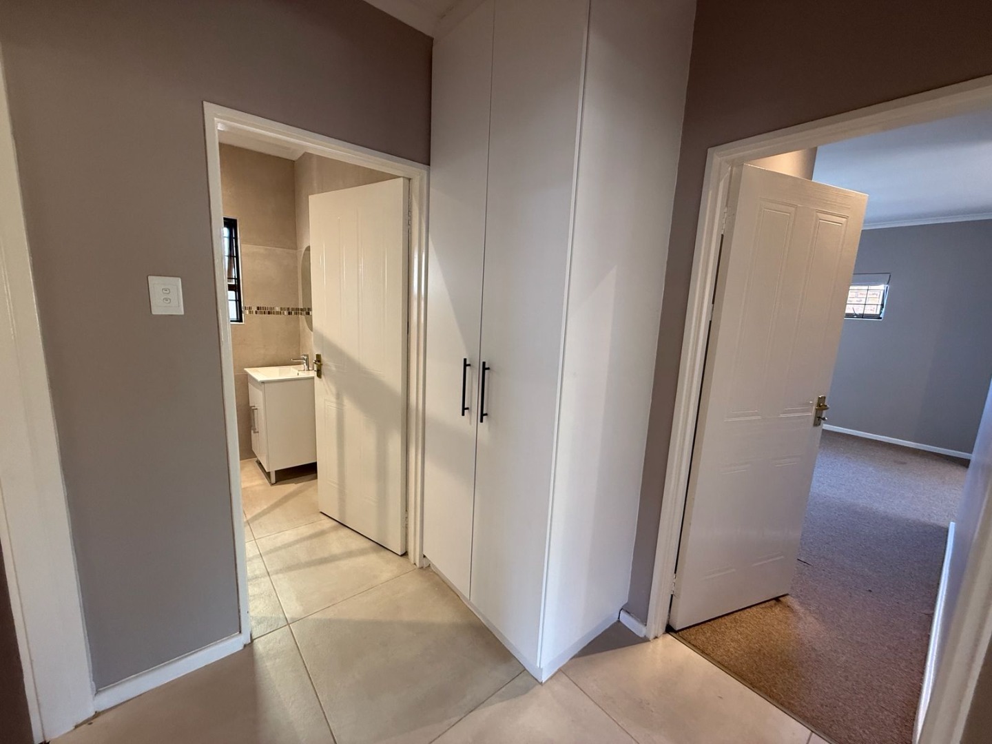 This modern 3-bedroom offers comfortable living within a secure complex in Walmer Downs, Port Elizabeth. The property features a spacious open-plan living area, tiled flooring, lighting, and newly painted walls.