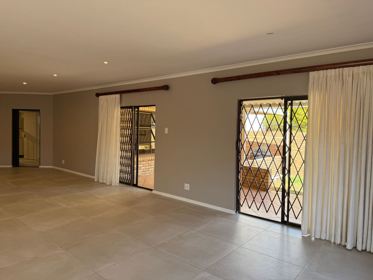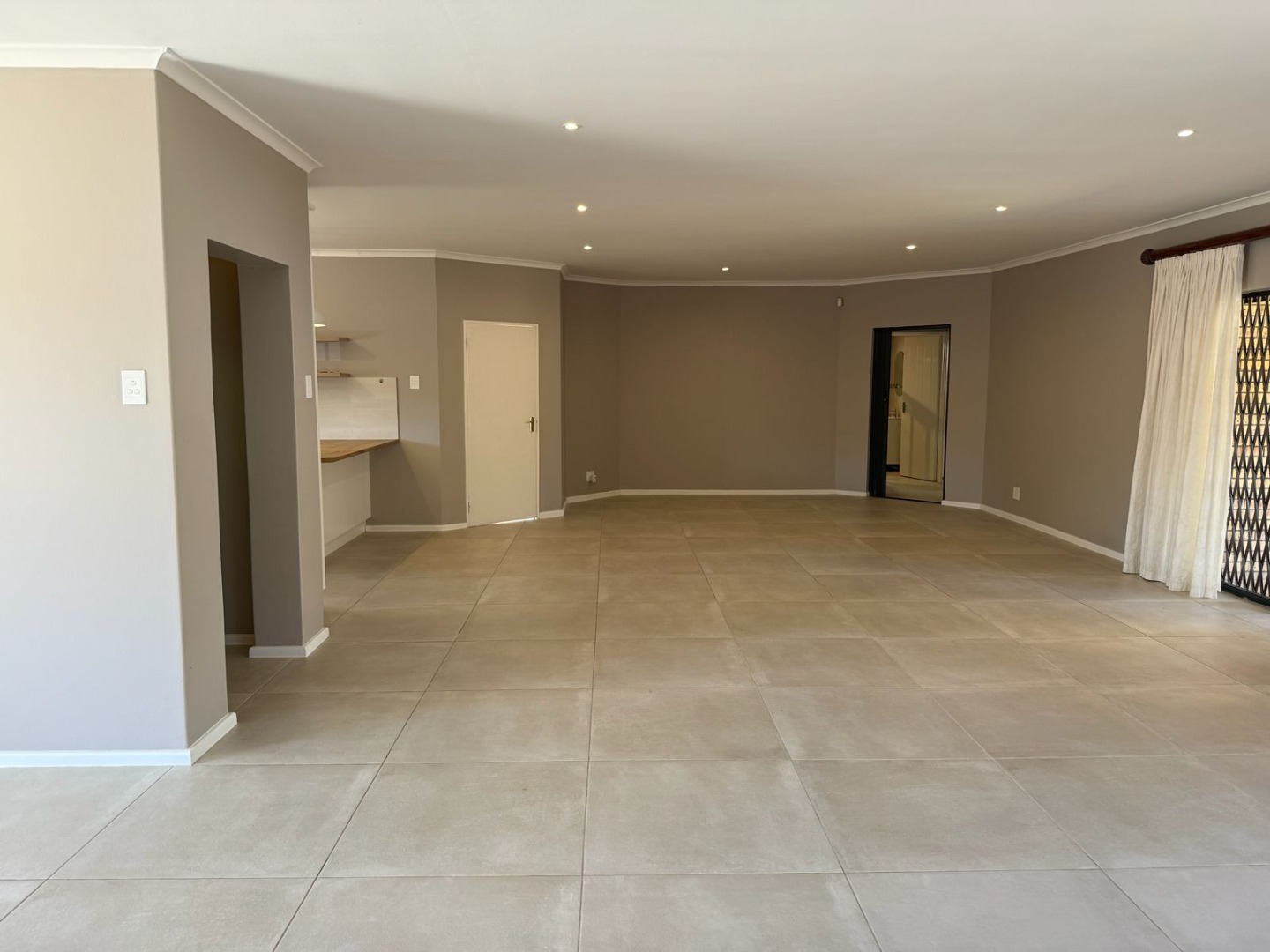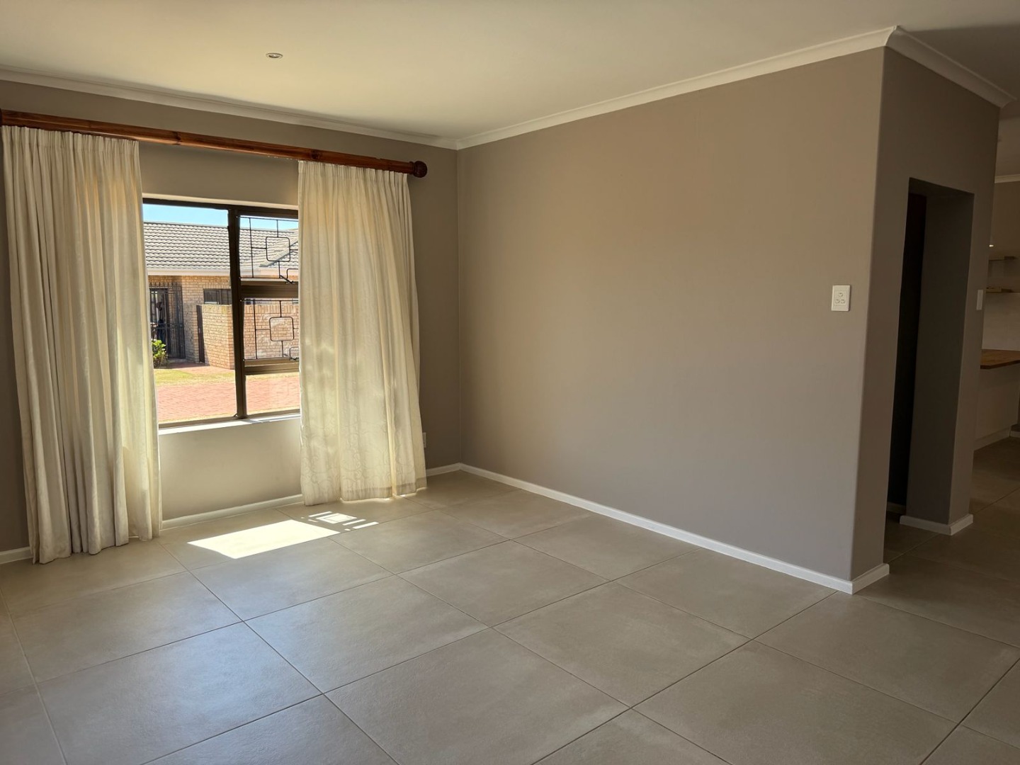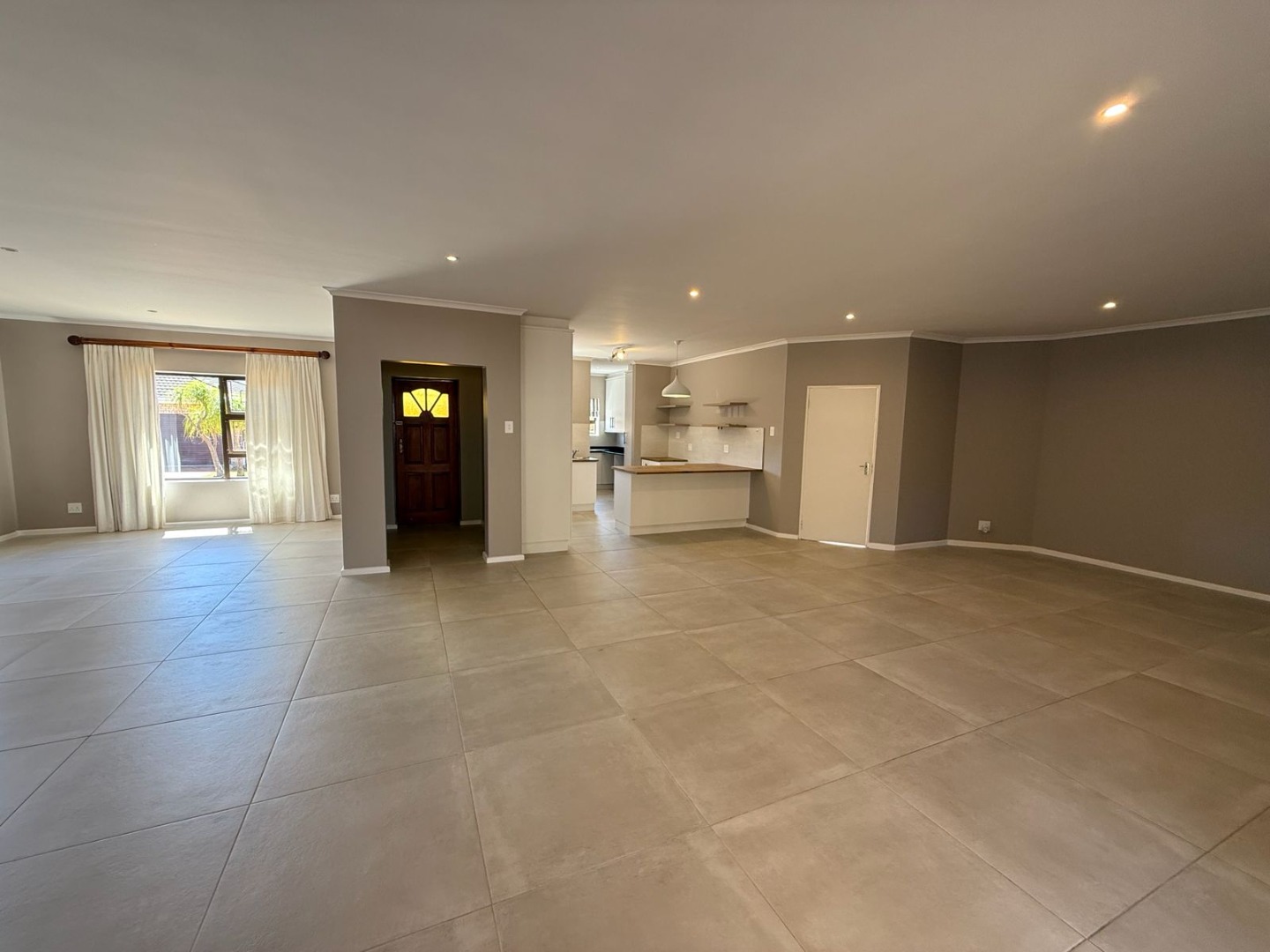 This modern 3-bedroom offers comfortable living within a secure complex in Walmer Downs, Port Elizabeth. The property features a spacious open-plan living area, tiled flooring, lighting, and newly painted walls.
