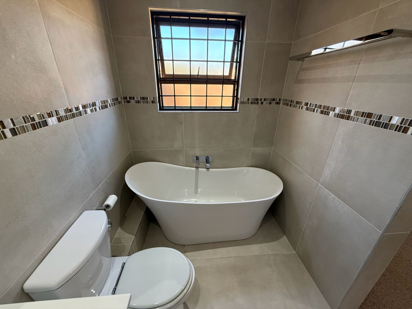 Residents benefit from living within a security complex and estate, an access gate with electric fencing along the boundary walls for enhanced safety. Security gates on exterior doors and window bars further reinforce the secure environment. Safe up-market complex in a quiet, leafy suburb.