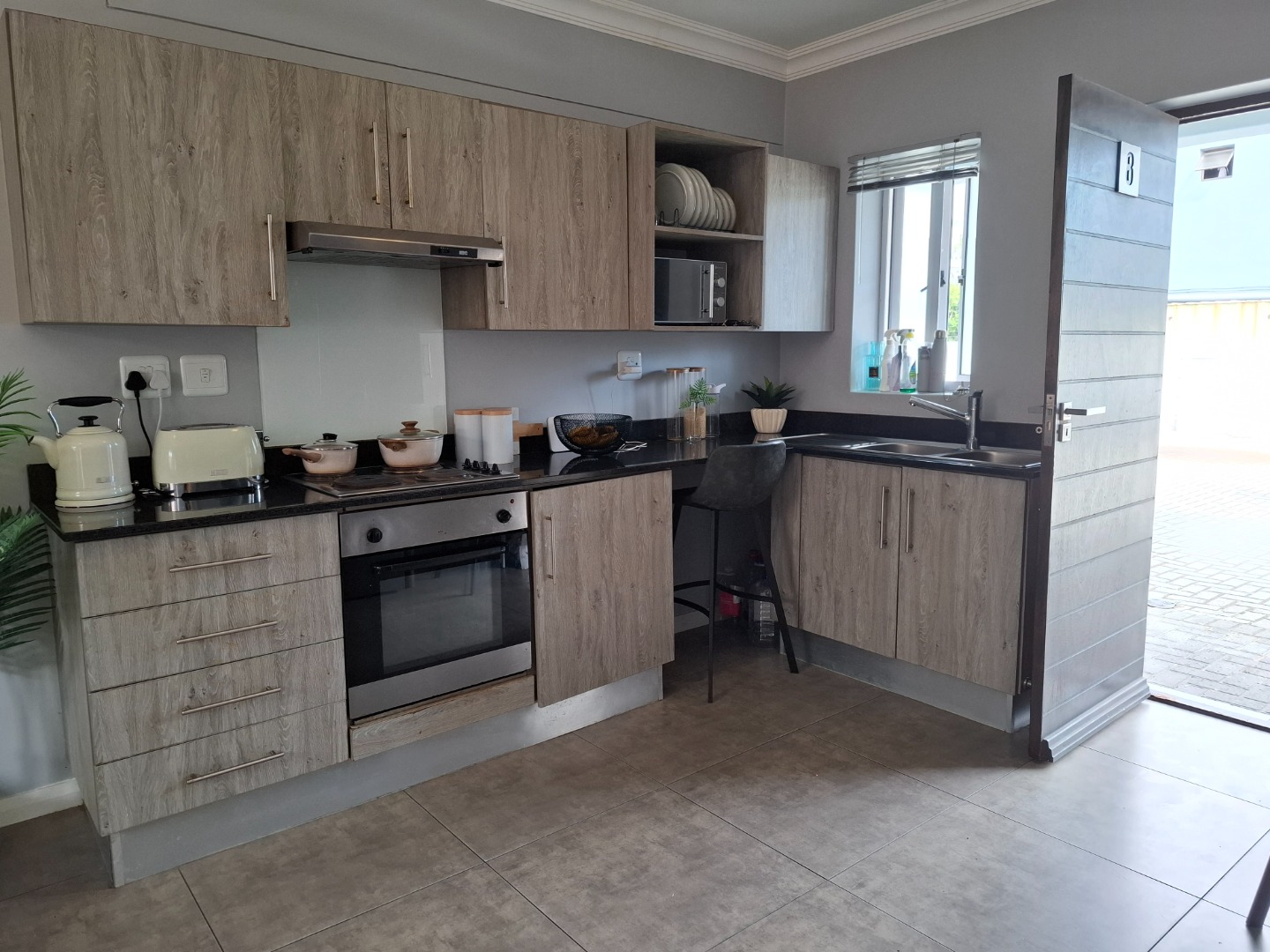 Open-plan Kitchen interleading into Living Area with Outdoor Braai (Small Courtyard)