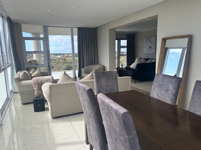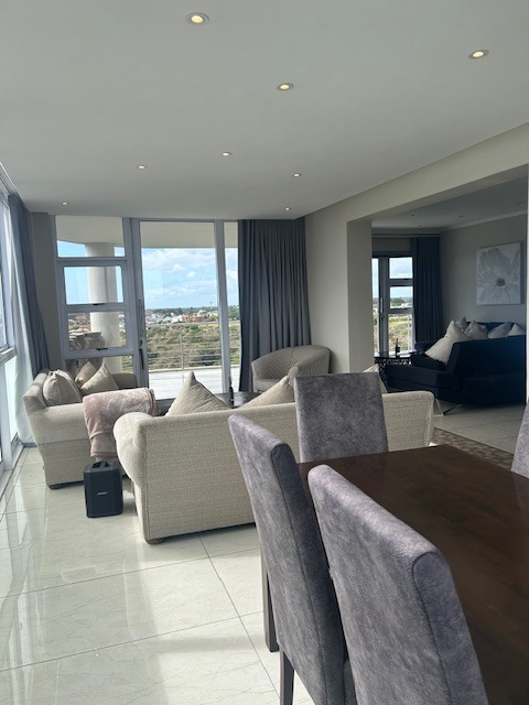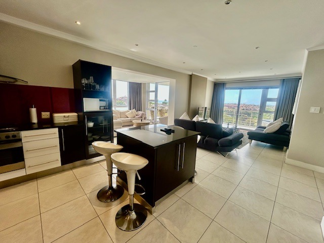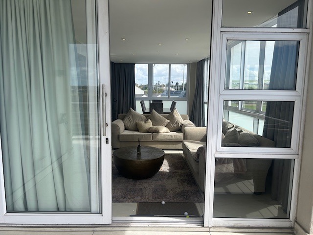 Open plan living areas with sliding doors to large wrap around balcony with valley views